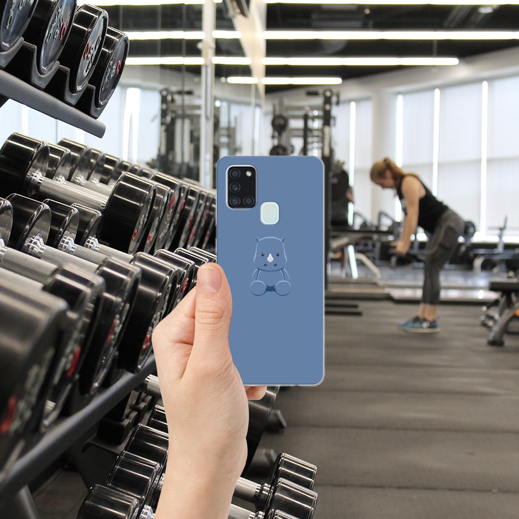 Ben je op zoek naar een uniek telefoonhoesje voor je Samsung Galaxy A21s? Dan ben je bij B2C Telecom aan het juiste adres! Speciaal voor jou hebben we dit prachtige Baby Rhino design in onze collectie hoesjes opgenomen. Het design wordt bedrukt op een Telefoonhoesje met Naam en is gemaakt van flexibel rubber. Het design wordt alleen aan de bovenkant van het hoesje bedrukt en de randen blijven transparant. Aan de zijkanten zijn uitsparingen gemaakt waardoor je met gemak alle knoppen en poorten kunt bedienen. Wij adviseren om dit hoesje in combinatie met een screenprotector te gebruiken voor een langere levensduur van je telefoon. Wil je dit design hoesje nog iets extra's geven? Voeg dan gratis je naam of een quote toe! Is dit design hoesje toch niet helemaal wat je zocht? Ontwerp dan zelf een hoesje in ons ontwerpprogramma.