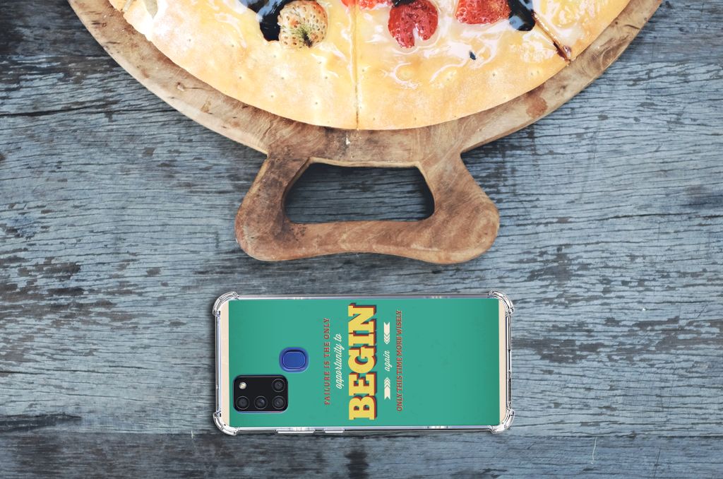 Ben je op zoek naar een uniek telefoonhoesje voor je Samsung Galaxy A21s? Dan ben je bij B2C Telecom aan het juiste adres! Speciaal voor jou hebben we dit prachtige Quote Begin design in onze collectie hoesjes opgenomen. Het design wordt bedrukt op een Telefoonhoesje met tekst en is gemaakt van flexibel rubber. Het hoesje is perfect voor de actieve smartphonegebruiker door de opstaande randen/hoeken. Denk aan mensen die veel sporten, reizen of wandelen en net iets meer zekerheid willen als het op hun geliefde telefoon aankomt. Het design wordt alleen aan de bovenkant van het hoesje bedrukt en de randen blijven transparant. Aan de zijkanten zijn uitsparingen gemaakt waardoor je met gemak alle knoppen en poorten kunt bedienen. Wij adviseren om dit hoesje in combinatie met een screenprotector te gebruiken voor een langere levensduur van je telefoon. Wil je dit hoesje nog iets extra's geven? Voeg dan gratis je naam of een quote toe! Is dit design hoesje toch niet helemaal wat je zocht? Ontwerp dan zelf een hoesje in ons ontwerpprogramma.