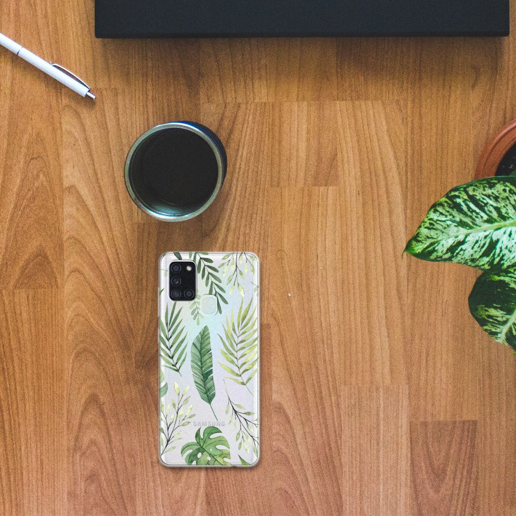 Je voelt je verbonden met de natuur als je kiest voor deze Samsung Galaxy A21s TPU Case met print Leaves. De print bestaat uit verschillende groene bladeren en dit zorgt voor een fraai decoratief geheel. Met dit patroon van groene bladeren creëer je een frisse uitstraling voor jouw smartphone. Jij doet er verstandig aan om je telefoon te beschermen met dit design hoesje met groene bladeren, die staan op een tpu case. Dit tpu hoesje kenmerkt zich onder meer door de opstaande randen aan de voorzijde, waardoor bij een val van de smartphone het scherm de grond niet raakt. Voel jij jezelf gezond met een beeld van groene bladeren, dan is deze tpu case met print een uitstekende optie. Het beschermt jouw telefoon aan de achterkant en zijkanten zeer goed. Het TPU is zeer flexibel en onbreekbaar. De zijkanten van de case blijven transparant. Kijk ook eens naar onze andere hoesjes met bladeren of misschien maak je zelf wel gewoon liefst je eigen hoesje met eigen foto’s van bladeren.