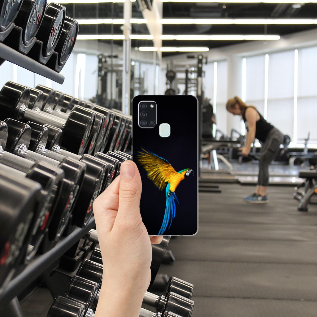 Dit design hoesje met Papegaai tegen een zwarte achtergrond is een zeer flexibele bescherming voor jouw smartphone. Dit komt vooral omdat deze print op een tpu case staat. Dit is een zeer buigzaam hoesje, dat de telefoon vooral aan de achterkant en zijkanten beschermt. De bovenkant van de Samsung Galaxy A21s TPU Hoesje wordt bedrukt met deze schitterende print. De zijkanten blijven doorzichtig. Papegaaien zijn erg sociale vogels die voldoende aandacht en gezelschap nodig hebben. Als je er voor kiest om een papegaai aan te schaffen, is het een goed idee om een koppeltje te nemen. Koop je meerdere tpu cases met een papegaai, dan ga je automatisch minder betalen per hoesje. Wij hanteren een systeem van bundelkorting. Dus koop dit hoesje met opstaande randen voor een spotprijs.