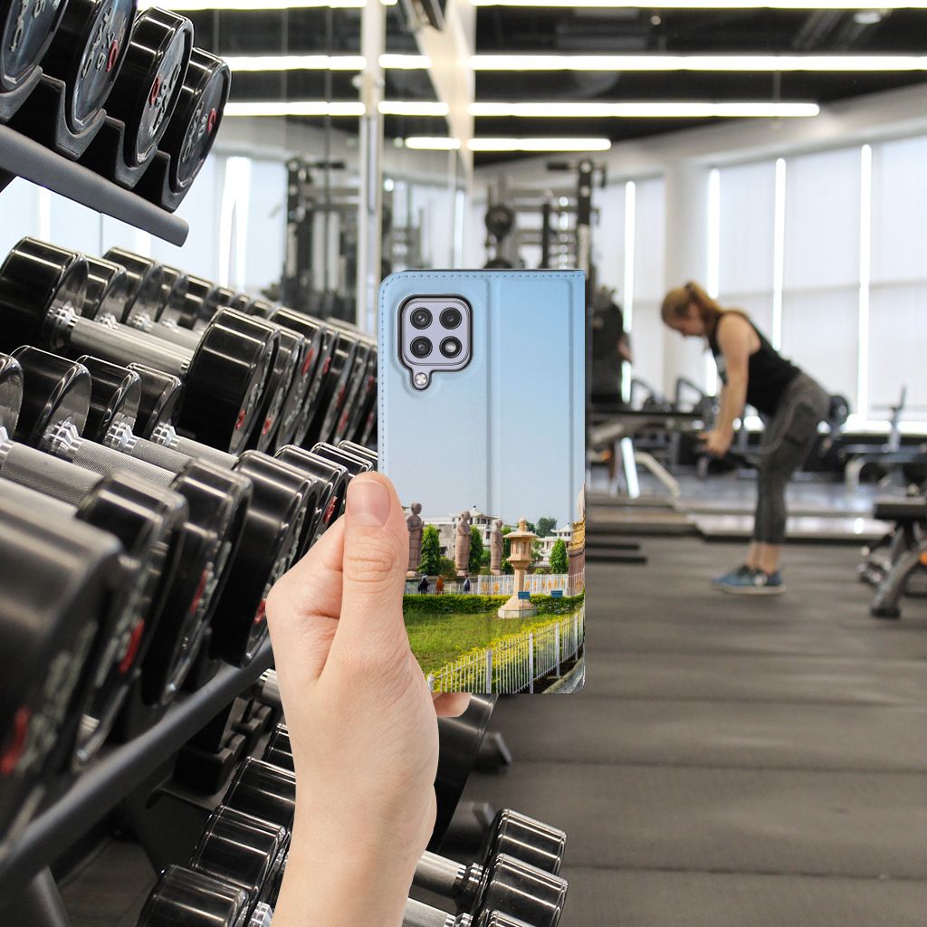 Van dit hoesje met boeddha print word je vanzelf rustig van binnen. Een boeddha staat te allen tijde voor geluk, symbolische genezing, liefde voor de ander, maar ook voor eigenwaarde. Daarnaast staat de boeddha symbool voor eeuwige vriendschap. Boeddhabeelden zie je vooral in tempels, maar tegenwoordig zien we ze ook steeds vaker in huizen en tuinen staan. Een boeddha dient met respect te worden behandeld. Doe dat dus ook met je telefoon. Dat kan met dit hoesje met Boeddha print. De case zorgt ervoor dat jij en je telefoon voor langere tijd in harmonie samen kunnen leven. Het design staat op een Samsung Galaxy A22 4G | M22 Book Cover. Deze case beschermt jouw telefoon aan alle kanten en beschikt over een 1 opbergvakje en een speciale standaard. Het hoesje wordt afgesloten met een magneet aan de binnenzijde. De houder aan de binnenzijde is van TPU. Alle zijden van de stand case worden bedrukt.