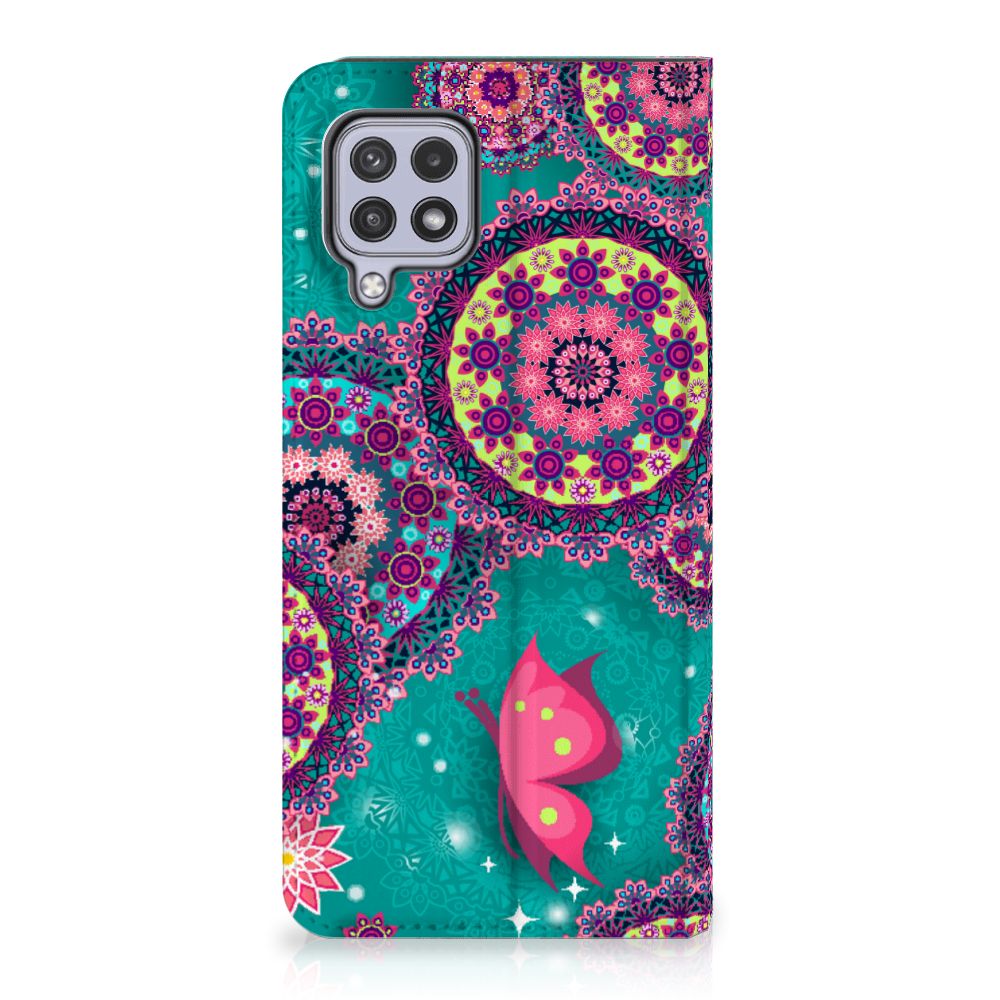 Deze opvallende Samsung Galaxy A22 4G | M22 Bookcase met Cirkels en Vlinders is een ware eyecatcher. De meeste vlinders hebben een onopvallende vleugelkleur en dat kun je van de soort op dit hoesje ook zeker wel zeggen. Wij kunnen deze opvallende vlinders en cirkels op een zeer handige stand case zetten. Deze hoesjes zijn zeer gewild. Met onze geavanceerde printer zetten we de print van opvallende vlinders en cirkels op alle zijden van het hoesje. De case met vlinders heeft aan de binnenkant een houder waarin je jouw creditcard of ander pasje kwijt kunt. De case heeft bovendien een handige standaard. Verder is je telefoon natuurlijk maximaal beschermd met deze stand case met print van opvallende en kleurrijke vlinders. De houder aan de binnenzijde van het design hoesje met opvallende vlinder print is van TPU.