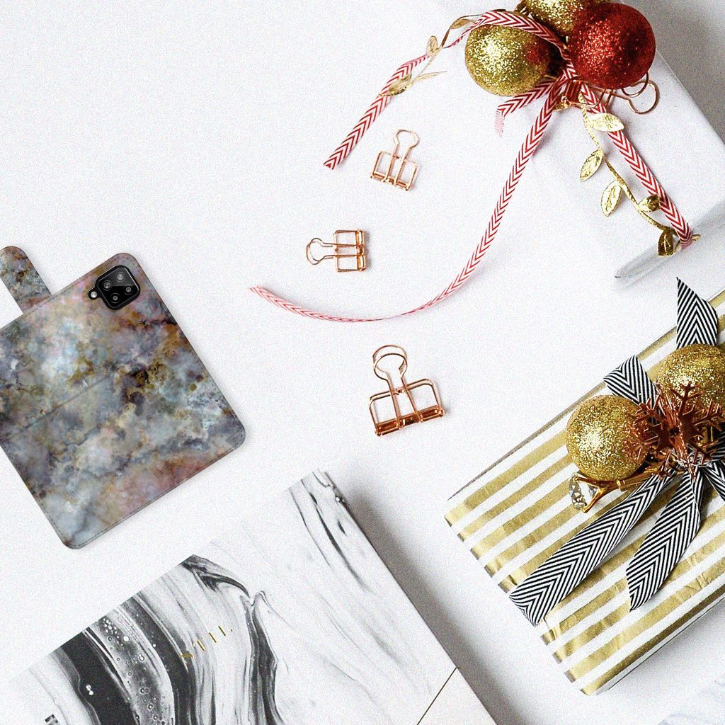 Samsung Galaxy A22 4G | M22 Bookcase met ruimte voor 3 pasjes Marmer Grijs