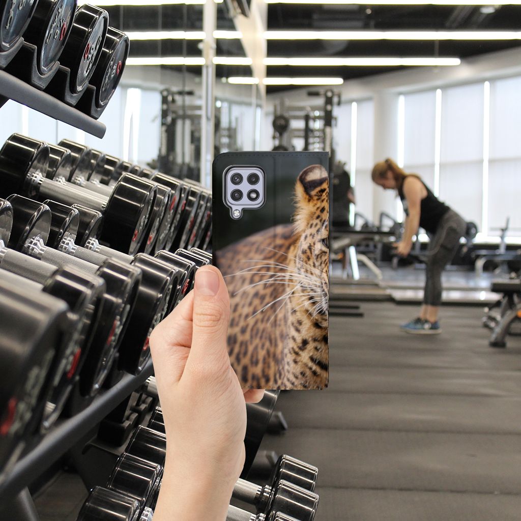 Het luipaard wordt ook wel een panter genoemd en is een sluwe kat. De bruingele vacht met een patroon van rozetachtige vlekken geeft een goede schutkleur. Dit zie je ook op een fraaie manier afgebeeld op dit super stoere hoesje. Mensen die indruk willen maken kopen deze stand case met design van het luipaard. Een Samsung Galaxy A22 4G | M22 Hoesje maken is van alle markten thuis. Het is praktisch – vanwege onder meer het opbergvakje en de magnetische sluiting aan de binnenzijde – maar beschermt jouw smartphone tevens beter dan welke case ook. Het luipaard is sterk en behendig en misschien typeert jou dat ook wel. Dan past dit hoesje met luipaard uitstekend bij jou. De houder van TPU aan de binnenzijde is net zo sterk als het luipaard. Jouw telefoon is perfect beschermd. De case heeft tevens een standaard.