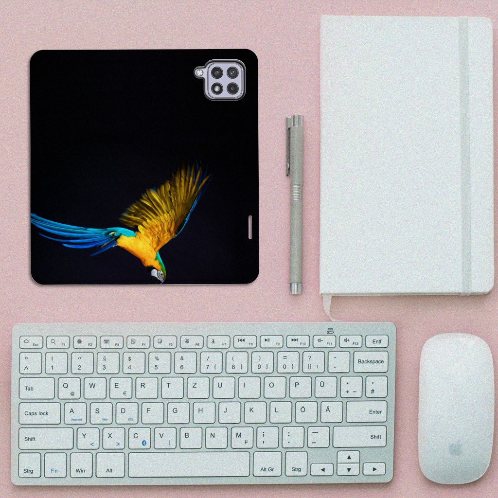 Dit design hoesje met Papegaai tegen een zwarte achtergrond is de perfecte bescherming voor jouw smartphone. Dit komt vooral omdat deze print op een stand case staat. Dit zijn onze meest populaire hoesjes, die de telefoon aan alle zijden beschermen. Alle zijden van de Samsung Galaxy A22 4G | M22 Hoesje maken worden bedrukt met deze schitterende print. Papegaaien zijn erg sociale vogels die voldoende aandacht en gezelschap nodig hebben. Als je er voor kiest om een papegaai aan te schaffen, is het een goed idee om een koppeltje te nemen. Koop je meerdere stand cases met een papegaai, dan ga je automatisch minder betalen per hoesje. Wij hanteren een systeem van bundelkorting. Dus koop dit hoesje met een houder voor een pasje en TPU houder aan de binnenkant voor een spotprijs.