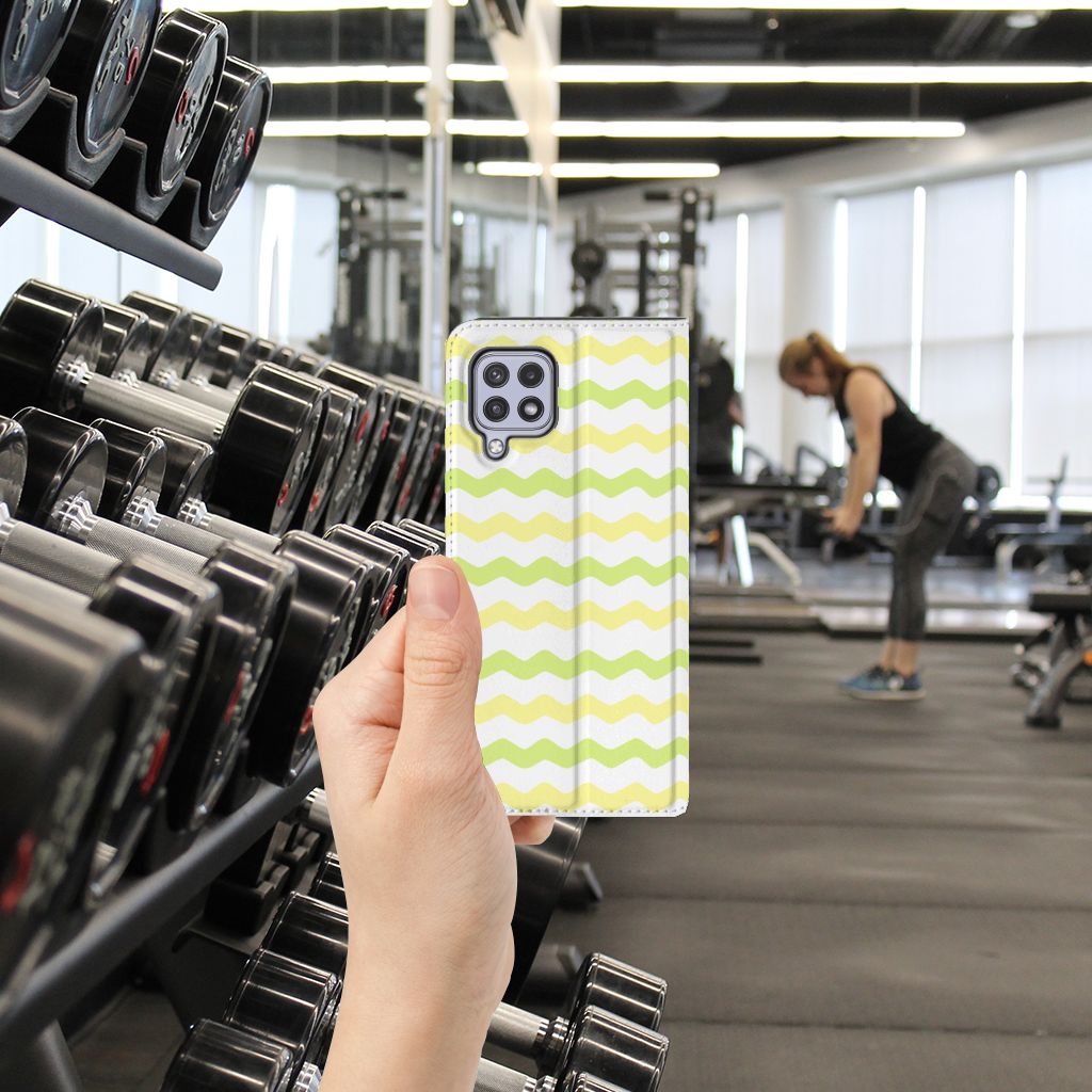 Dit Waves Yellow design hoesje met licht groene en gele golven is speciaal ontworpen voor jouw telefoon. We hebben een vleugje lichtgeel toegevoegd, zodat de case er een beetje spannender en leuker uitziet. Dit licht groene hoesje met licht groene golven ziet er oogstrelend uit. Het wordt in ons eigen magazijn bedrukt, in zeer goede kwaliteit inkt. Wij kunnen dus een zeer duurzaam hoesje met licht groene golven garanderen. Dit hele mooie Samsung Galaxy A22 4G | M22 Hoesje met Magneet heeft vele extra’s. Is dit licht groene design hoesje je op het lijf geschreven? Grijp dan nu je kans. Deze stand case met licht groene golven beschermt jouw telefoon aan alle kanten en beschikt over een 1 opbergvakje en een speciale standaard. Het licht groene hoesje wordt afgesloten met een magneet aan de binnenzijde. De houder aan de binnenzijde is van het flexibele TPU. Alle zijden van de stand case worden bedrukt.