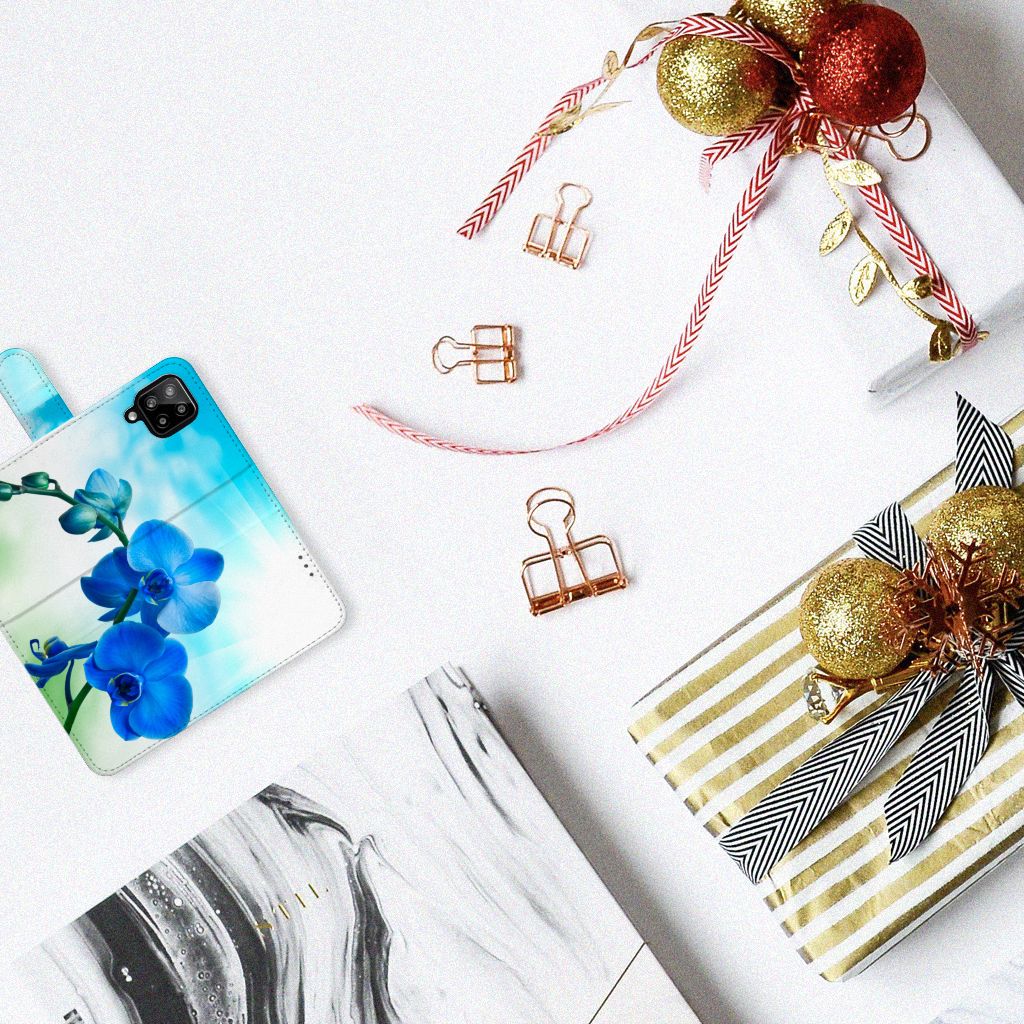 Samsung Galaxy A22 4G | M22 Hoesje met magnetische sluitclip Orchidee Blauw