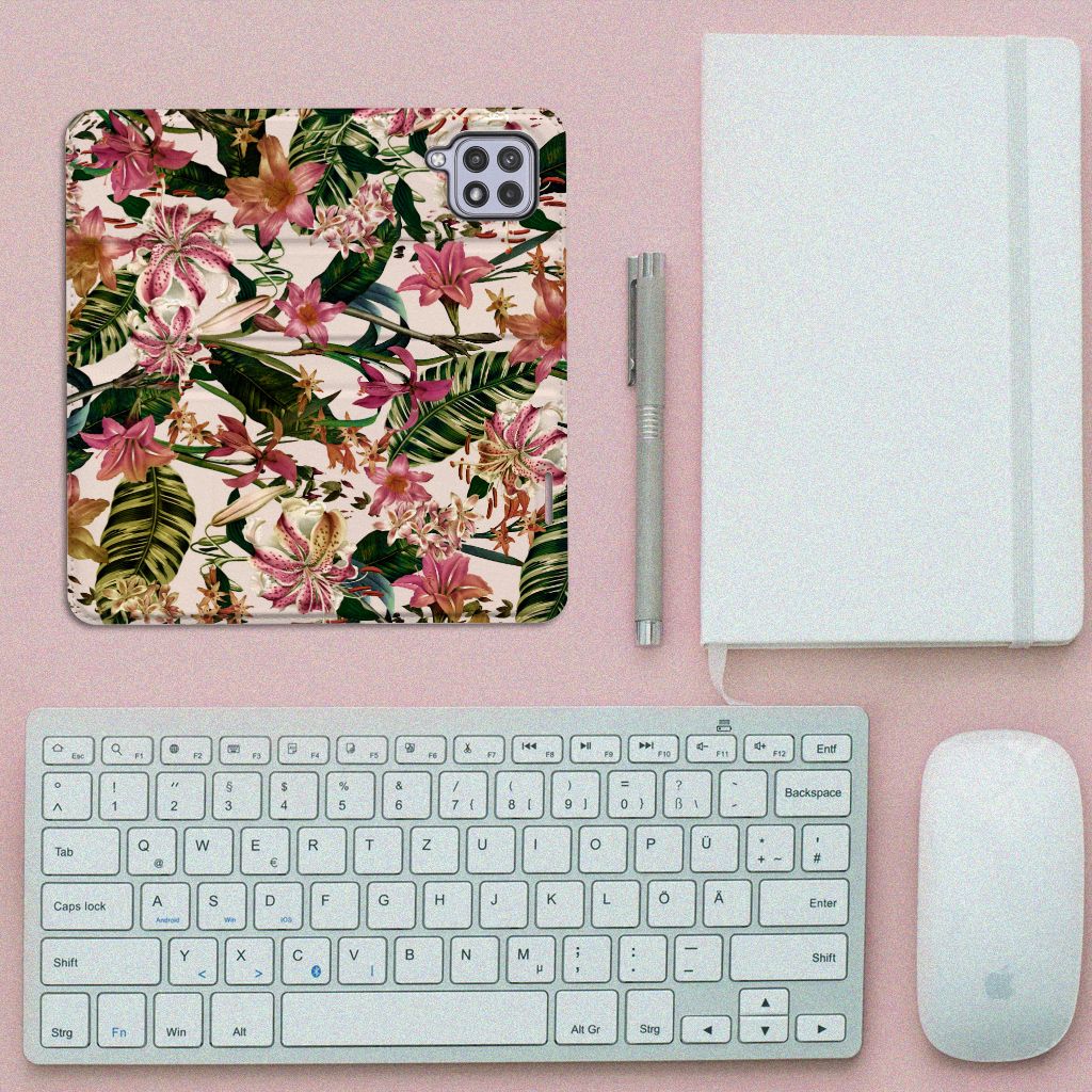Dit Flowers design is een zegen voor de mens en zijn smartphone. De paarswitte bloemen en groene bladeren op deze Samsung Galaxy A22 4G | M22 Smart Cover geven jouw smartphone een zeer sierlijke uitstraling. Je krijgt er meteen een goed gevoel bij als je aan het appen, mailen of aan het bellen bent. Valt dan je telefoon op de grond, dan zal er dankzij de stand case met paarswitte bloemen en groene bladeren geen schade ontstaan. Onze stand cases met paarswitte bloemen en groene bladeren bieden de allerbeste bescherming en zijn heel praktisch, wat blijkt uit onder meer het vakje aan de binnenkant en de handige standaard waarmee je de smartphone rechtop op tafel neer kunt zetten. De paarswitte bloemen en groene bladeren komen op alle zijden van de case te staan. Op deze stand case van leer en TPU (houder aan de binnenkant) kun je in no time zelf foto’s van jouw favoriete bloemen zetten.