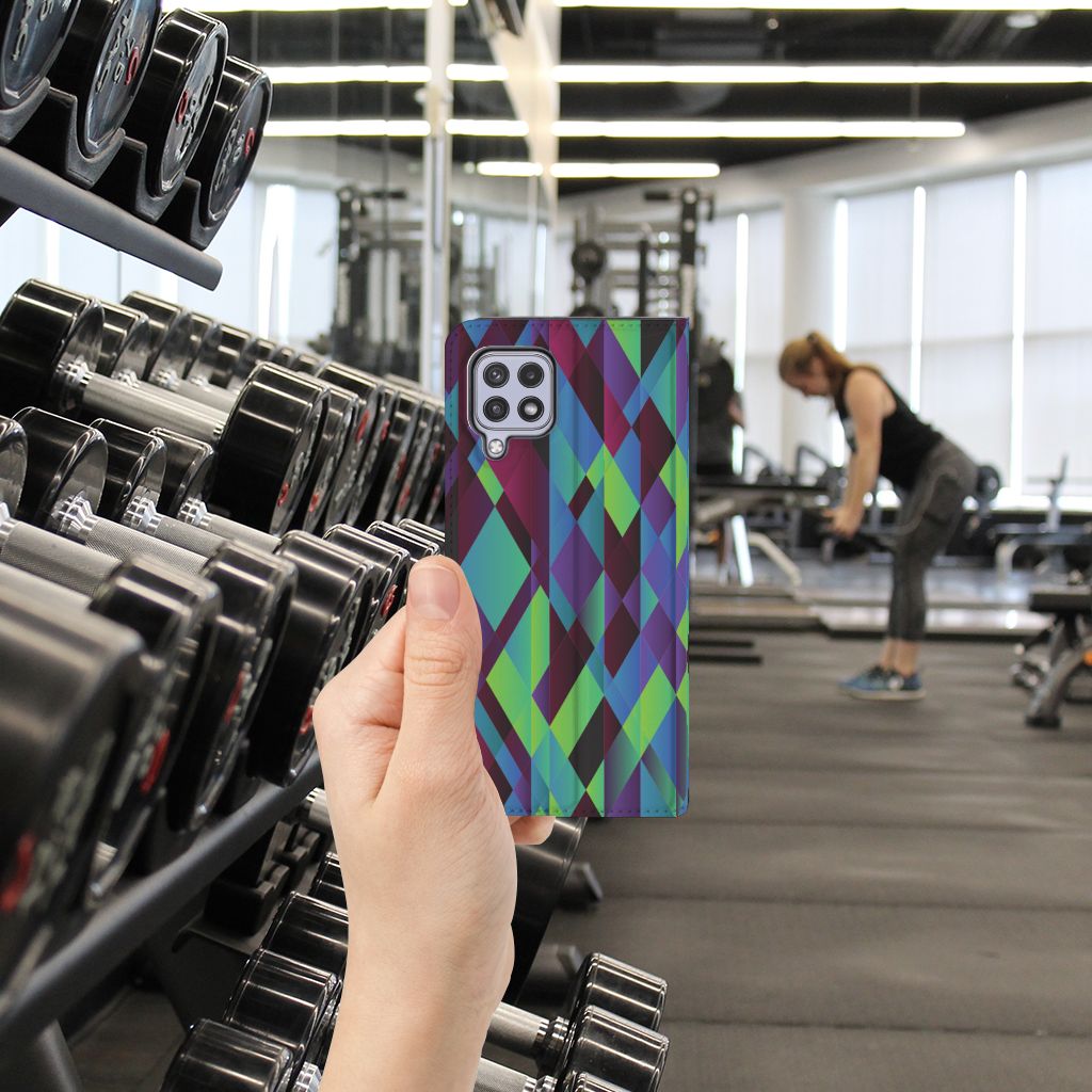Dit kleurrijke design hoesje is een zeer opvallende bescherming voor jouw smartphone. Mensen zien je van ver aankomen wandelen als je dit hoesje om je telefoon hebt zitten. De case beschikt over ongelooflijk veel kleuren: groen, blauw, paars, blauw, bruin en ga zo maar door. Ze hebben gemeenschappelijk dat ze allemaal zeer fel zijn en op een zeer kunstzinnige manier door elkaar zijn gebruikt. Jouw Samsung Galaxy A22 4G | M22 krijgt zeker kleur als je dit hoesje koopt. Het ziet er zeer hip en trendy uit. Zeker een case waar met bewondering naar gekeken zal worden. Het design Abstract Green Blue staat op een stand case. Deze case beschermt jouw telefoon aan alle kanten en beschikt over een 1 opbergvakje en een speciale standaard. Het Stand Case wordt afgesloten met een magneet aan de binnenzijde. De houder aan de binnenzijde is van TPU. Alle zijden worden bedrukt.