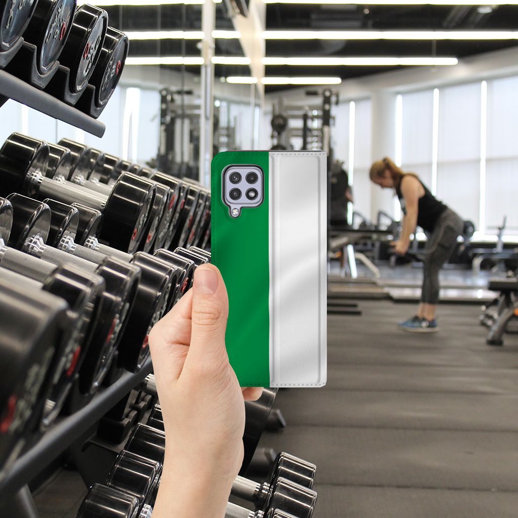 Vroeger werden vlaggen gebruikt om een boodschap over te brengen of een ridderorde aan te duiden. Tegenwoordig worden vlaggen gebruikt voor verschillende doeleinden. Een vlag kan worden gebruikt om te verwijzen naar een land, stad of beweging. Het staat symbool voor de nationaliteit van de mens. In onze collectie hebben wij alle Europese vlaggen opgenomen. De vlag wordt gedrukt op een Standcase voor de Samsung Galaxy A22 4G | M22 en heeft een vakje voor pasjes. Het fijne aan dit hoesje is dat je het horizontaal als standaard neer kunt zetten. Door de magneten aan de binnenkant wordt het hoesje afgesloten. Ook bieden wij de mogelijkheid om gratis je naam toe te voegen om het hoesje helemaal af te maken. Wil je meer vrijheid om het hoesje helemaal naar eigen wens te maken? Ga dan verder met ontwerpen in ons unieke ontwerpprogramma.