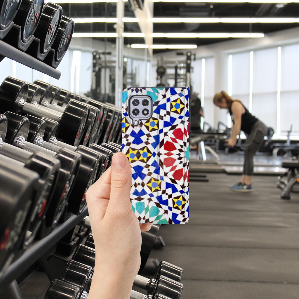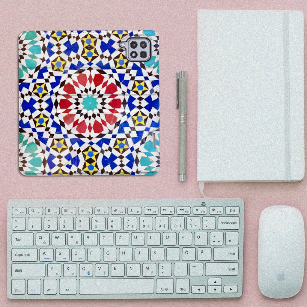 Aan design hoesjes met kunstvormen geen gebrek in onze uitgebreide collectie. Wat dacht je van dit design hoesje met Mozaïek . Dit is een kunstvorm waarbij een grote afbeelding wordt gemaakt uit een groot aantal kleine gekleurde steentjes (tesserae), die in een vloer of wand worden gemetseld. Deze gekleurde steentjes zie je terug op deze stand case met design van mozaïek. Een stand case is een van de veiligste cases die er bestaan. Een Samsung Galaxy A22 4G | M22 Standcase met print zorgt voor een volledige bescherming van je smartphone en wordt aan alle zijden bedrukt met mozaïek. Verder is de houder aan de binnenzijde van TPU. De Grieken en Romeinen beheersten de kunst al. Op diverse plaatsen in Europa zijn mozaïeken teruggevonden die tot op de dag van vandaag goed bewaard zijn gebleven. Met een hoesje met mozaïek blijft jouw telefoon in tact. Je pasje en kun je in het vakje aan de binnenzijde stoppen. De case heeft ook een standaard.