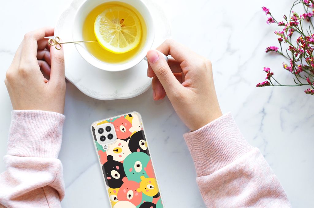 Op dit hoesje vind je een bereschattig ontwerp! Vergeef ons de woordgrap, maar hoe moeten we dit lieve ontwerp anders omschrijven? Op dit knuffelige ontwerp zie je leuke, getekende beertjes in vrolijke kleuren als geel, blauw en roze. Dankzij de contrasterende witte en zwarte beertjes vallen de felle kleurtjes nog meer op. Al met al is dit Telefoonhoesje met Naam voor de Samsung Galaxy A22 4G | M22 een perfect hoesje voor de knuffelberen onder ons. TPU is flexibel en onbreekbaar. Zo is je telefoon aan de achterkant en de randen heel goed beschermd. De case met het Bears-design is aan de bovenkant bedrukt, de randen blijven transparant. Het TPU-hoesje is perfect te combineren met een screenprotector, zo zijn je telefoon en je beeldscherm perfect beschermd.