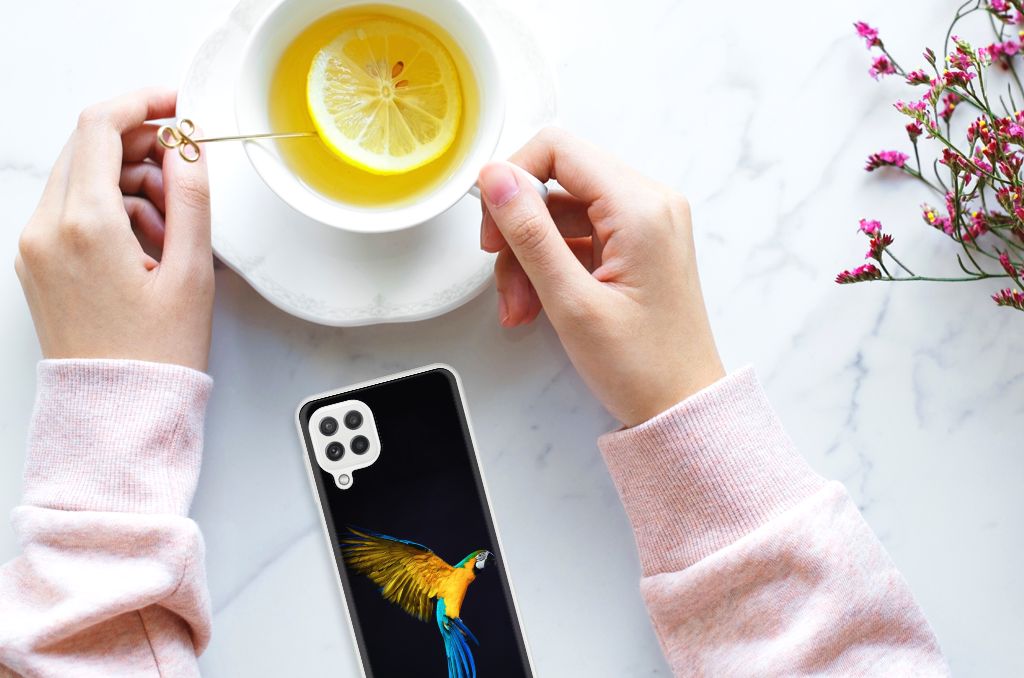 Dit design hoesje met Papegaai tegen een zwarte achtergrond is een zeer flexibele bescherming voor jouw smartphone. Dit komt vooral omdat deze print op een tpu case staat. Dit is een zeer buigzaam hoesje, dat de telefoon vooral aan de achterkant en zijkanten beschermt. De bovenkant van de Samsung Galaxy A22 4G | M22 TPU Hoesje wordt bedrukt met deze schitterende print. De zijkanten blijven doorzichtig. Papegaaien zijn erg sociale vogels die voldoende aandacht en gezelschap nodig hebben. Als je er voor kiest om een papegaai aan te schaffen, is het een goed idee om een koppeltje te nemen. Koop je meerdere tpu cases met een papegaai, dan ga je automatisch minder betalen per hoesje. Wij hanteren een systeem van bundelkorting. Dus koop dit hoesje met opstaande randen voor een spotprijs.