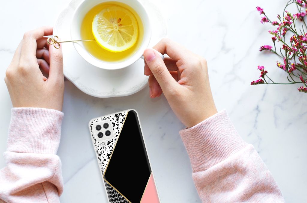 TPU Hoesje Samsung Galaxy A22 4G | M22 Zwart Roze Vormen Design
