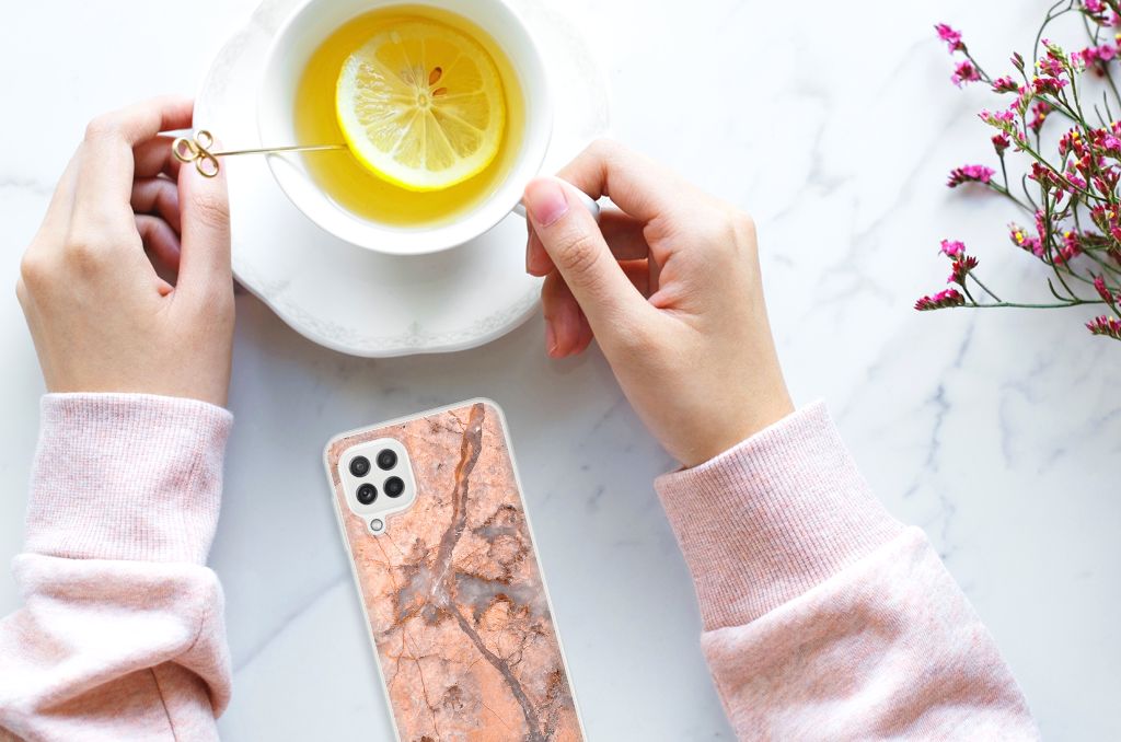 Dit design hoesje met Marmer Oranje is zeer geschikt voor jouw kostbare telefoon. Vanwege zijn prachtige lichtval en vastheid is marmer een zeer gewild bouwmateriaal. Wij kunnen inmiddels concluderen dat dit hoesje met oranje marmer ook zeer gewild is. Beloon jezelf en je telefoon met dit hele mooie Samsung Galaxy A22 4G | M22 TPU Siliconen Hoesje. Naast het oranje marmer zijn er de diverse marmersoorten in een ruim kleurenpallet te krijgen. Deze tpu case met marmer in oranje wordt aan de achterzijde bedrukt. De case beschikt over opstaande randen en is gemaakt van onbreekbaar materiaal. De randen van de case in oranje marmer blijven transparant. Wij hebben onze designer veel vrijheid gegeven met het ontwerpen dit mooie hoesje. Het resultaat zie je terug in deze tpu case met oranje marmer, dat een hele goede bescherming is voor jouw smartphone. Des te mooi dat wij voor variatie hebben gekozen door een hoesje met oranje marmer aan de bieden.