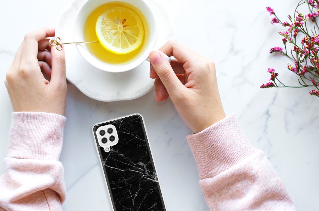 Dit design hoesje met Marmer Zwart is voor de artistieke personen onder ons. De Grieken en Romeinen wisten het materiaal al te waarderen door het in de bouw toe te passen. Naast het witte marmer met haar zacht grijze geaderde belijning zijn de diverse soorten in een gevarieerd kleurenpallet te krijgen. We hebben mooie kleuren op design hoesjes gezet, zoals in dit geval zwart marmer. Dit is een Samsung Galaxy A22 4G | M22 TPU Siliconen Hoesje met marmer in bruine kleur. Het marmer wordt bedrukt op de voorkant van een tpu case, die beschikt over opstaande randen aan de voorkant en heel goed combineert met een screenprotector van glas of van folie. De rijkdom aan kleuren en varianties in afwerking geeft ontwerpers de vrijheid om met marmer hele mooie architectonische projecten te realiseren. Wij hebben onze designer tevens veel vrijheid gegeven. Het resultaat zie je terug in deze tpu case met zwart marmer, die jouw smartphone goed beschermt. De zijkanten van de case worden niet bedrukt met het zwarte marmer.