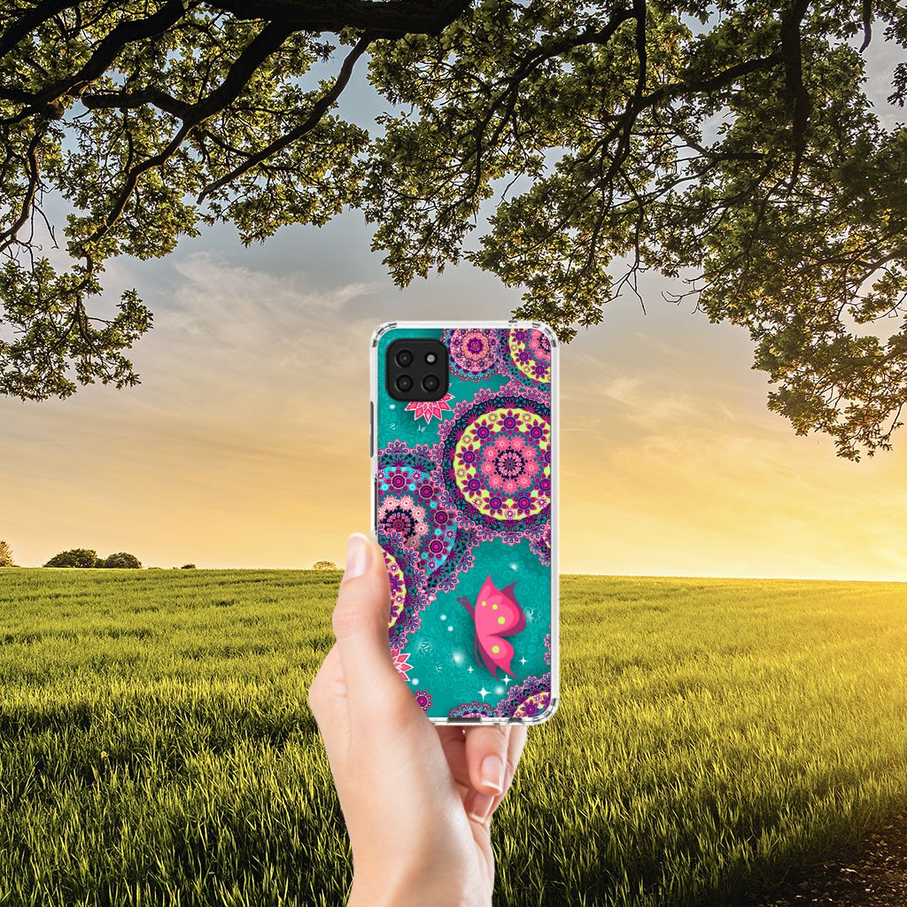Ben je op zoek naar een uniek telefoonhoesje voor je Samsung Galaxy A22 5G? Dan ben je bij B2C Telecom aan het juiste adres! Speciaal voor jou hebben we dit prachtige Cirkels en Vlinders design in onze collectie hoesjes opgenomen. Het design wordt bedrukt op een Back Cover en is gemaakt van flexibel rubber. Het hoesje is perfect voor de actieve smartphonegebruiker door de opstaande randen/hoeken. Denk aan mensen die veel sporten, reizen of wandelen en net iets meer zekerheid willen als het op hun geliefde telefoon aankomt. Het design wordt alleen aan de bovenkant van het hoesje bedrukt en de randen blijven transparant. Aan de zijkanten zijn uitsparingen gemaakt waardoor je met gemak alle knoppen en poorten kunt bedienen. Wij adviseren om dit hoesje in combinatie met een screenprotector te gebruiken voor een langere levensduur van je telefoon. Wil je dit hoesje nog iets extra's geven? Voeg dan gratis je naam of een quote toe! Is dit design hoesje toch niet helemaal wat je zocht? Ontwerp dan zelf een hoesje in ons ontwerpprogramma.