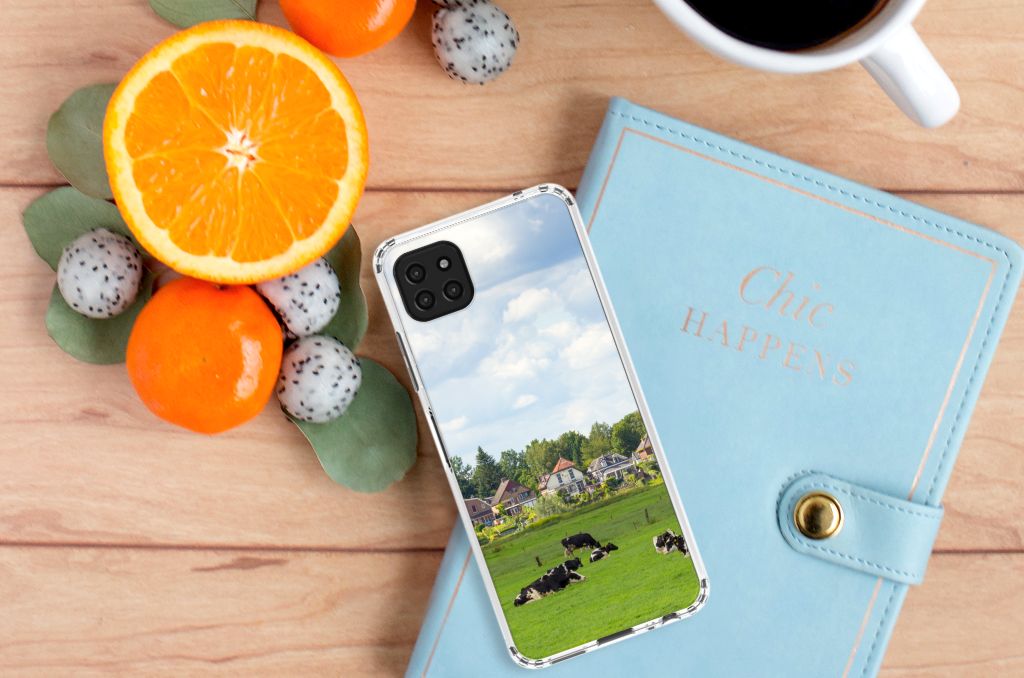 Ben je op zoek naar een uniek telefoonhoesje voor je Samsung Galaxy A22 5G? Dan ben je bij B2C Telecom aan het juiste adres! Speciaal voor jou hebben we dit prachtige Koeien design in onze collectie hoesjes opgenomen. Het design wordt bedrukt op een Case Anti-shock en is gemaakt van flexibel rubber. Het hoesje is perfect voor de actieve smartphonegebruiker door de opstaande randen/hoeken. Denk aan mensen die veel sporten, reizen of wandelen en net iets meer zekerheid willen als het op hun geliefde telefoon aankomt. Het design wordt alleen aan de bovenkant van het hoesje bedrukt en de randen blijven transparant. Aan de zijkanten zijn uitsparingen gemaakt waardoor je met gemak alle knoppen en poorten kunt bedienen. Wij adviseren om dit hoesje in combinatie met een screenprotector te gebruiken voor een langere levensduur van je telefoon. Wil je dit hoesje nog iets extra's geven? Voeg dan gratis je naam of een quote toe! Is dit design hoesje toch niet helemaal wat je zocht? Ontwerp dan zelf een hoesje in ons ontwerpprogramma.