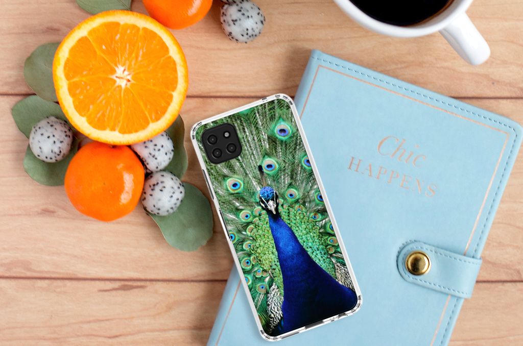 Samsung Galaxy A22 5G Hoesje maken Pauw met Bloemen
