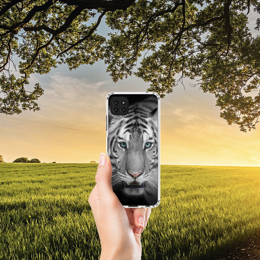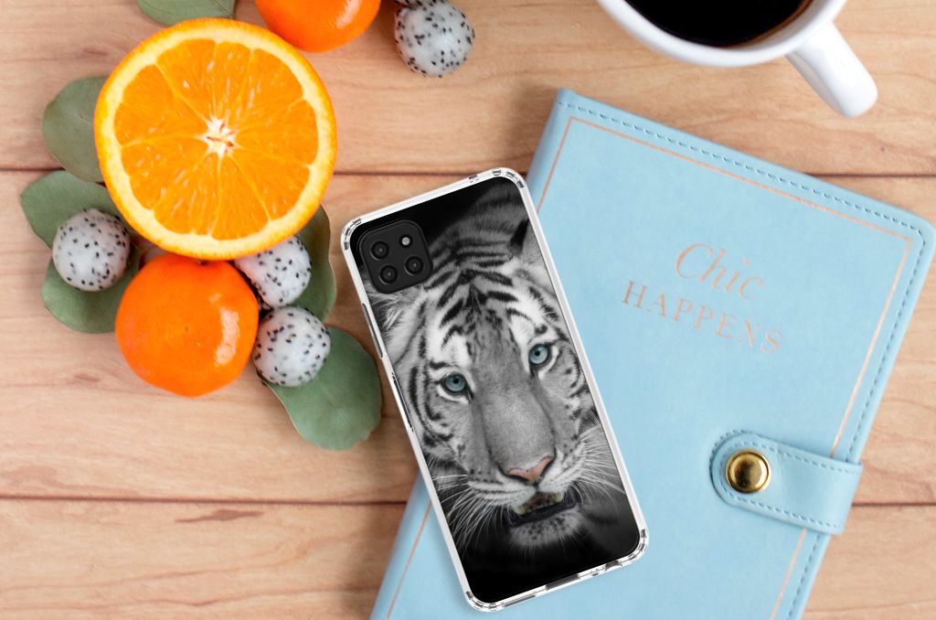 Ben je op zoek naar een uniek telefoonhoesje voor je Samsung Galaxy A22 5G? Dan ben je bij B2C Telecom aan het juiste adres! Speciaal voor jou hebben we dit prachtige Tijger design in onze collectie hoesjes opgenomen. Het design wordt bedrukt op een Case Anti-shock en is gemaakt van flexibel rubber. Het hoesje is perfect voor de actieve smartphonegebruiker door de opstaande randen/hoeken. Denk aan mensen die veel sporten, reizen of wandelen en net iets meer zekerheid willen als het op hun geliefde telefoon aankomt. Het design wordt alleen aan de bovenkant van het hoesje bedrukt en de randen blijven transparant. Aan de zijkanten zijn uitsparingen gemaakt waardoor je met gemak alle knoppen en poorten kunt bedienen. Wij adviseren om dit hoesje in combinatie met een screenprotector te gebruiken voor een langere levensduur van je telefoon. Wil je dit hoesje nog iets extra's geven? Voeg dan gratis je naam of een quote toe! Is dit design hoesje toch niet helemaal wat je zocht? Ontwerp dan zelf een hoesje in ons ontwerpprogramma.