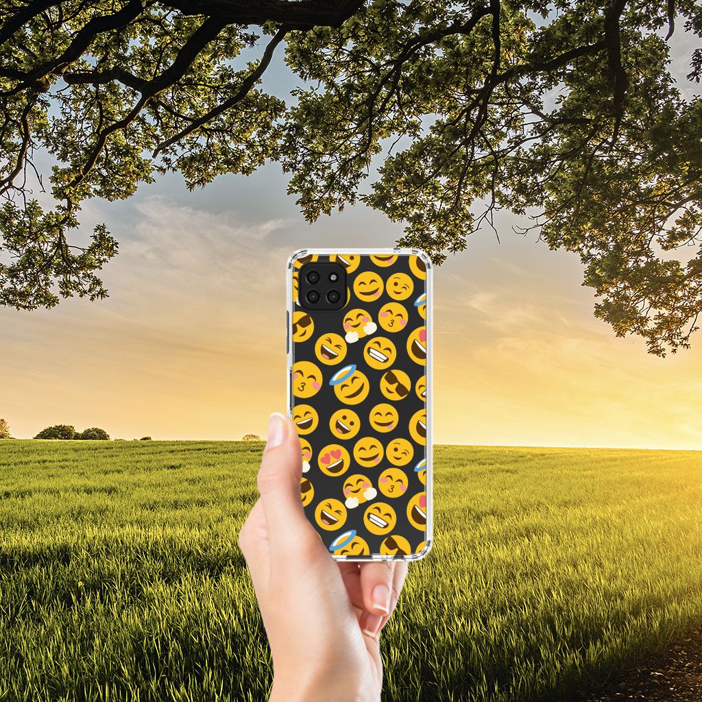 Ben je op zoek naar een uniek telefoonhoesje voor je Samsung Galaxy A22 5G? Dan ben je bij B2C Telecom aan het juiste adres! Speciaal voor jou hebben we dit prachtige Emoji design in onze collectie hoesjes opgenomen. Het design wordt bedrukt op een Doorzichtige Silicone Hoesje en is gemaakt van flexibel rubber. Het hoesje is perfect voor de actieve smartphonegebruiker door de opstaande randen/hoeken. Denk aan mensen die veel sporten, reizen of wandelen en net iets meer zekerheid willen als het op hun geliefde telefoon aankomt. Het design wordt alleen aan de bovenkant van het hoesje bedrukt en de randen blijven transparant. Aan de zijkanten zijn uitsparingen gemaakt waardoor je met gemak alle knoppen en poorten kunt bedienen. Wij adviseren om dit hoesje in combinatie met een screenprotector te gebruiken voor een langere levensduur van je telefoon. Wil je dit hoesje nog iets extra's geven? Voeg dan gratis je naam of een quote toe! Is dit design hoesje toch niet helemaal wat je zocht? Ontwerp dan zelf een hoesje in ons ontwerpprogramma.