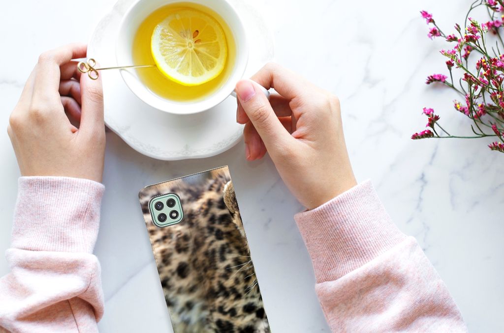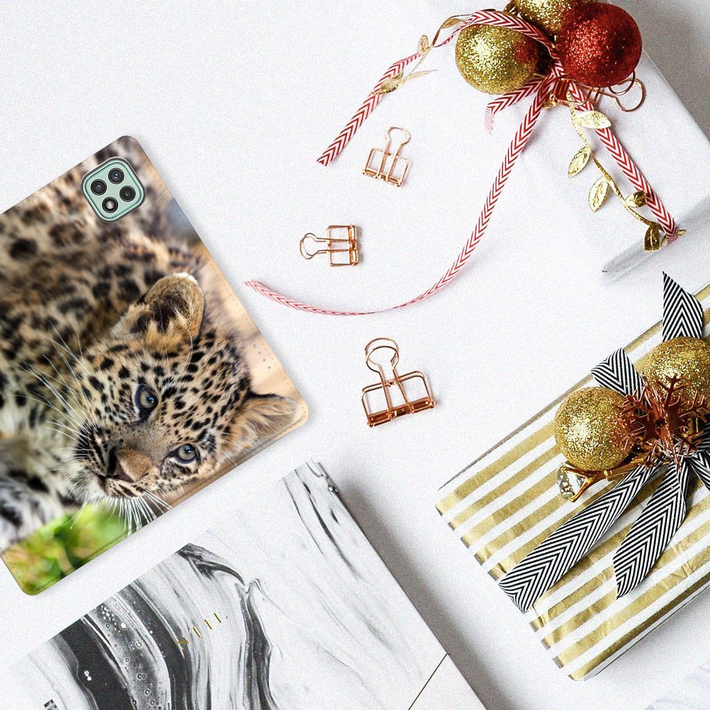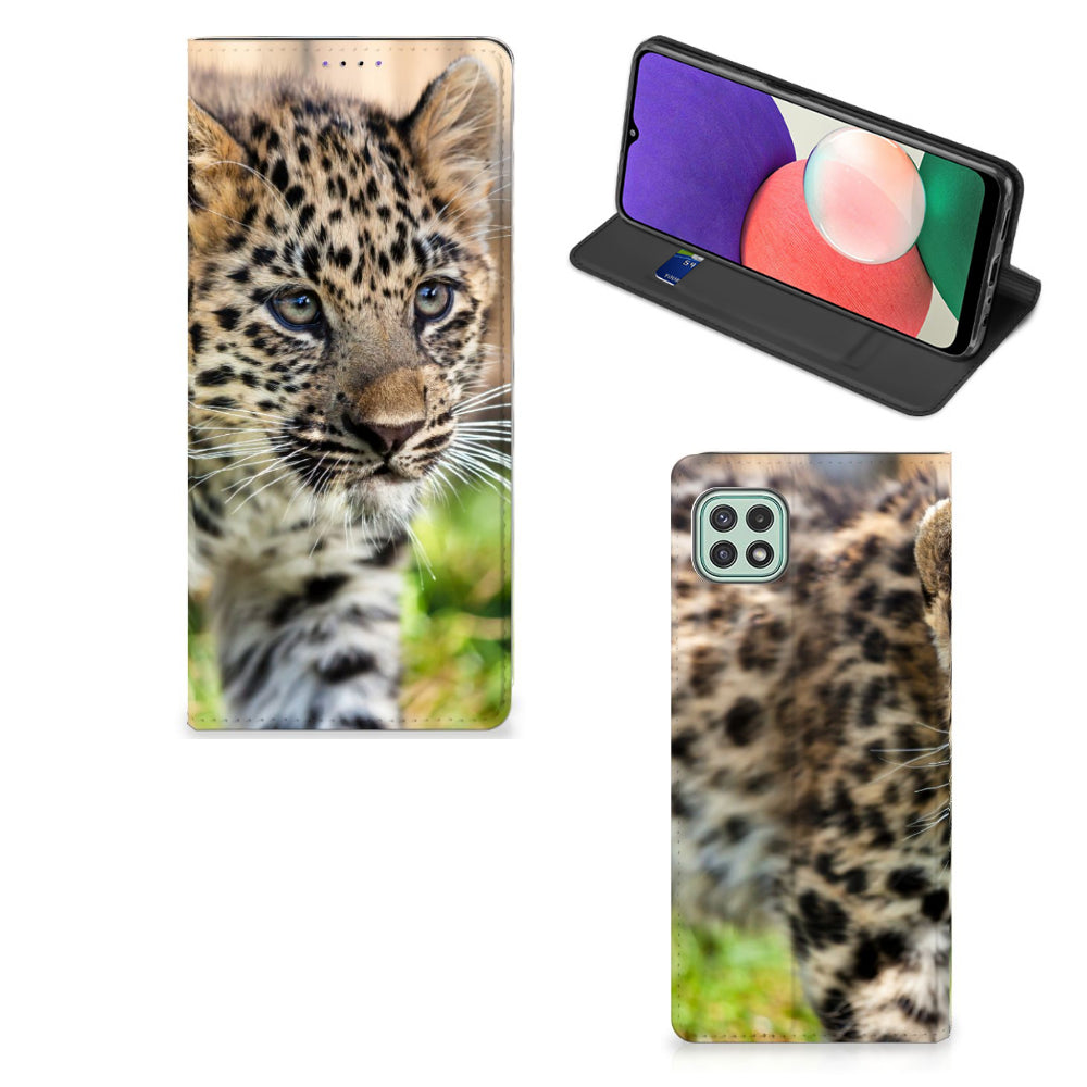 De luipaard is een grote, gespierde katachtige met korte, krachtige poten en een lange staart. Aangezien het op dit hoesje een baby luipaard betreft, zijn deze eigenschappen nog niet volledig tot wasdom gekomen. De kop van de luipaard is breed en een beetje rond van vorm met kleine, ronde oren. De snuit is middelgroot, met krachtige kaken en lange snorharen. De vacht van een luipaard is bedekt met veel zwarte vlekken. Kies je voor dit design hoesje, dan zal er van vlekken op jouw smartphone nooit en te nimmer sprake zijn. Het stoere en tegelijkertijd aandoenlijke design staat op een stand case. Een Samsung Galaxy A22 5G Hoesje maken beschermt jouw telefoon aan alle kanten en beschikt over een 1 opbergvakje en een speciale standaard. Het hoesje wordt afgesloten met een magneet aan de binnenzijde. De houder aan de binnenzijde is van TPU.