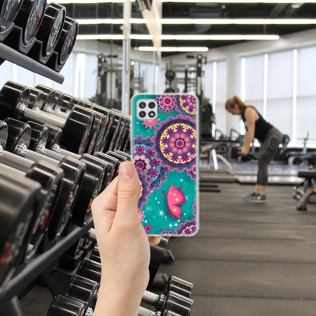 Deze opvallende Samsung Galaxy A22 5G Hoesje maken met Cirkels en Vlinders is een ware eyecatcher. De meeste vlinders hebben een onopvallende vleugelkleur en dat kun je van de soort op dit hoesje ook zeker wel zeggen. Wij kunnen deze opvallende vlinders en cirkels op een zeer handige tpu case zetten. Deze hoesjes zijn gewild omwille hun flexibiliteit. Met onze geavanceerde printer zetten we de print van opvallende vlinders en cirkels op de achterkant van het hoesje. De case met vlinders en cirkels blijft aan de zijkanten doorzichtig, zodat je maximaal het design van je smartphone behoudt. Verder is je telefoon natuurlijk goed beschermd met deze tpu case met print van blauwe vlinders. De bovenkant wordt bedrukt, de zijkanten niet. Met een screenprotector bescherm je ook het scherm maximaal.