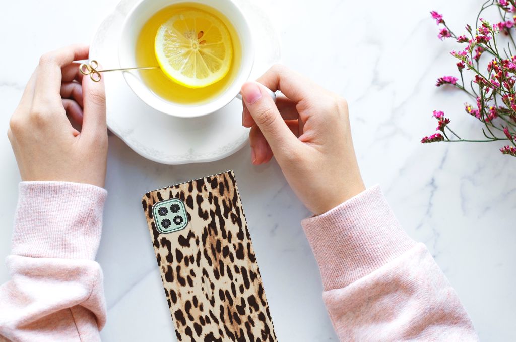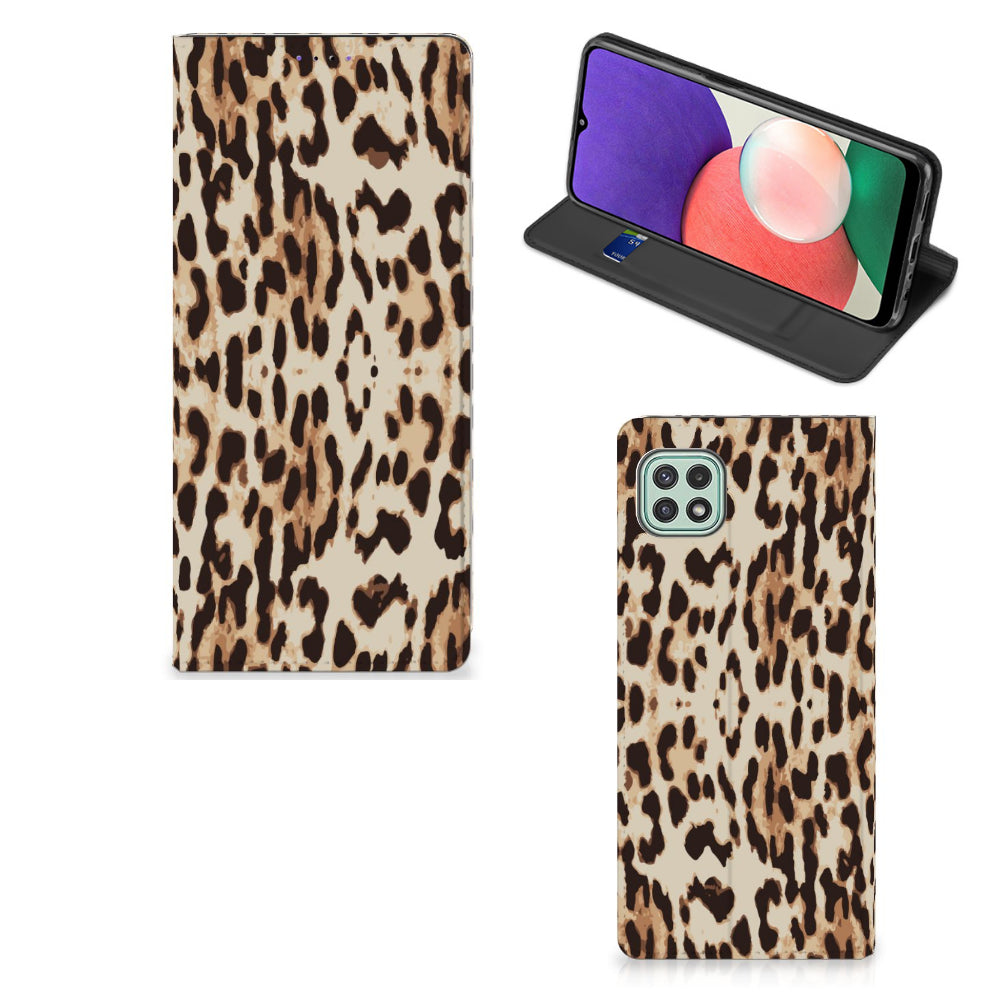 Het luipaard wordt ook wel een panter genoemd en is een sluwe kat. De bruingele vacht met een patroon van rozetachtige vlekken geeft een goede schutkleur. Dit zie je ook op een fraaie manier afgebeeld op dit super stoere hoesje met luipaardprint. Mensen die indruk willen maken kopen deze stand case met Leopard print. Een Samsung Galaxy A22 5G Hoesje maken is van alle markten thuis. Het is praktisch – vanwege onder meer het opbergvakje en de magnetische sluiting aan de binnenzijde – maar beschermt jouw smartphone tevens op een geweldige manier. Het luipaard is sterk en behendig en wellicht typeert jou dat ook wel. Dan past dit hoesje met luipaard perfect bij jou. De houder van TPU aan de binnenzijde is minstens zo sterk als het luipaard. Jouw telefoon is perfect beschermd en de case heeft tevens een standaard.