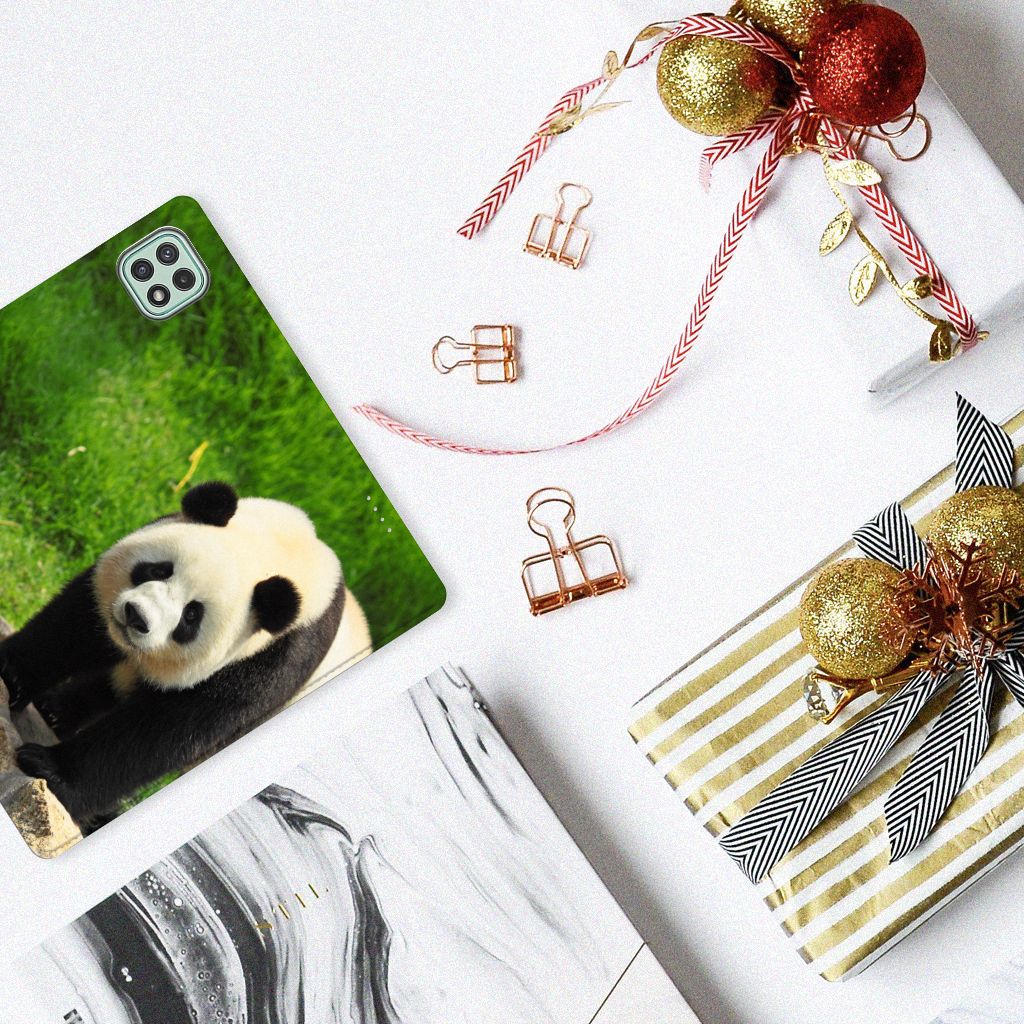 Ons design hoesje met afbeelding van een Panda is momenteel bijzonder populair. Wij denken te weten waarom dit zo is. De panda wordt door de bolle vorm van het gezicht in combinatie met de 'grote' zwarte ogen beschouwd als aandoenlijk en aaibaar. Dit maakt deze stand case zeer geliefd onder zeer veel smartphonegebruikers. Een Samsung Galaxy A22 5G Hoesje maken met panda is de ultieme bescherming van de smartphone. Wanneer alle zijden van de telefoon beschermd worden, kan er namelijk weinig fout gaan. Deze zijden worden volledig bedrukt met panda. Wij zijn ervan overtuigd dat jij jezelf populair maakt met dit hoesje, waardoor je weinig pandapunten zult scoren. De stand case heeft een houder van de TPU aan de binnenzijde, net als een opbergvakje voor een pasje en een magnetische sluiting.
