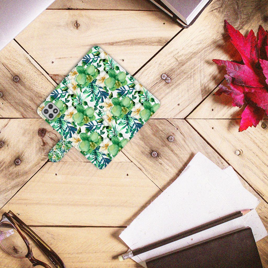 Samsung Galaxy A22 5G Hoesje met ruimte voor drie pasjes Orchidee Groen
