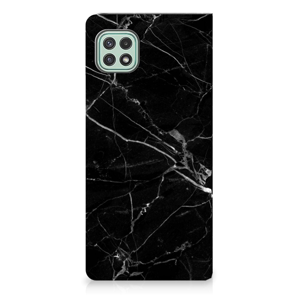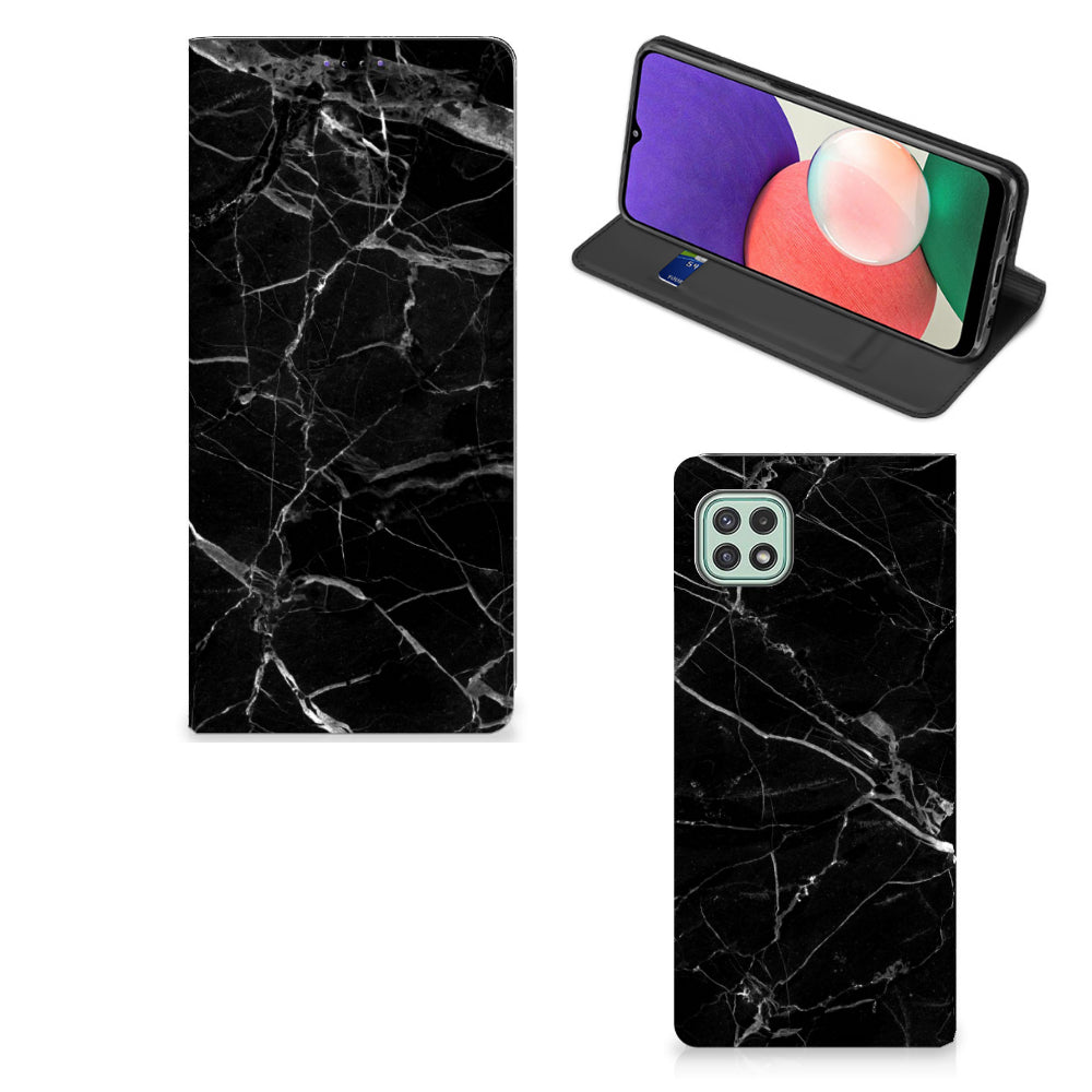 Dit design hoesje met Marmer Zwart is voor de artistieke personen onder ons. De Grieken en Romeinen wisten het materiaal al te waarderen door het in de bouw toe te passen. Naast het witte marmer met haar zacht grijze geaderde belijning zijn de diverse soorten in een gevarieerd kleurenpallet te krijgen. We hebben mooie kleuren op design hoesjes gezet, zoals in dit geval zwart marmer. Dit is een Samsung Galaxy A22 5G Standcase met marmer in zwarte kleur. Het marmer wordt bedrukt op alle zijden van een stand case, die beschikt over 1 vakje voor een pasje en een magnetische sluiting aan de binnenzijde. Verder heeft de hoes een houder van TPU. De rijkdom aan kleuren en varianties in afwerking geeft ontwerpers de vrijheid om met marmer hele mooie architectonische projecten te realiseren. Wij hebben onze ontwerper tevens veel vrijheid gegeven. Het resultaat zie je terug in deze stand case met zwart marmer, dat de ideale bescherming voor jouw smartphone biedt.
