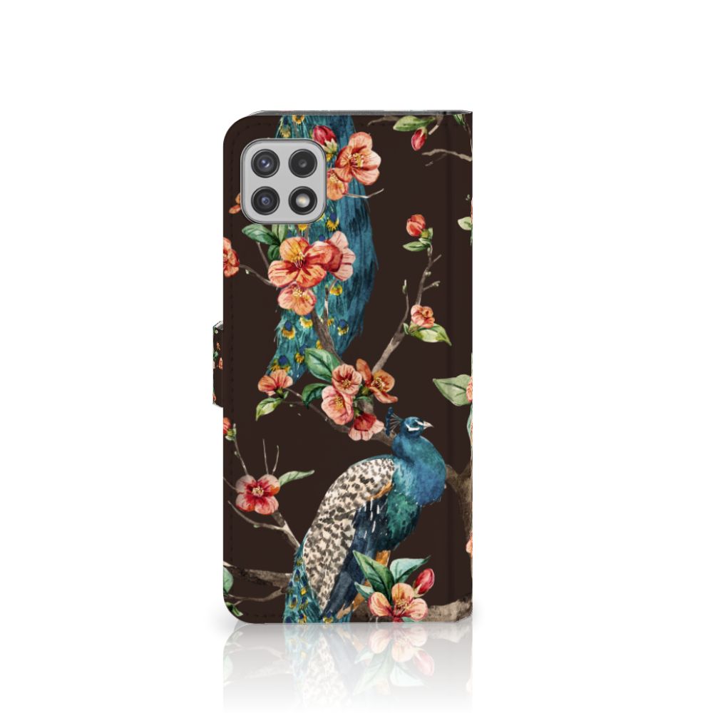 Samsung Galaxy A22 5G Telefoonhoesje sluit met magnetisch lipje Pauw | Bloemen