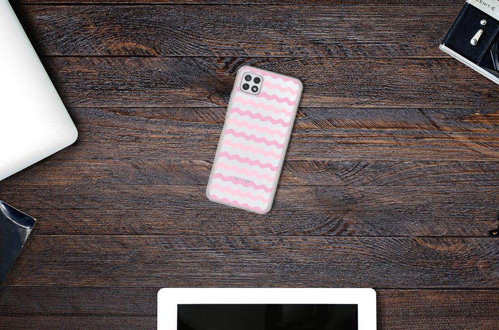 Dit design hoesje met Waves Roze afdruk is speciaal op maat gemaakt voor jouw telefoon. We hebben verschillende kleurstellingen gebruikt in het design, zodat de case er spannend en leuk uitziet. Dit licht roze hoesje met verschillende soorten golven ziet er opwindend uit. Het Samsung Galaxy A22 5G TPU bumper wordt in ons eigen magazijn bedrukt, vandaar dat we de kosten zeer laag kunnen houden. Wij kunnen het duurzame hoesje met licht roze golven zeer snel leveren. Heb jij altijd al een design hoesje met verschillende soorten licht roze willen hebben? Deze TPU case met licht roze golven wordt alleen aan de bovenkant bedrukt en is zeer flexibel. De randen van het hoesje met licht roze golven blijven transparant en worden niet bedrukt. Met dit licht roze hoesje past jouw telefoon altijd in je broekzak.