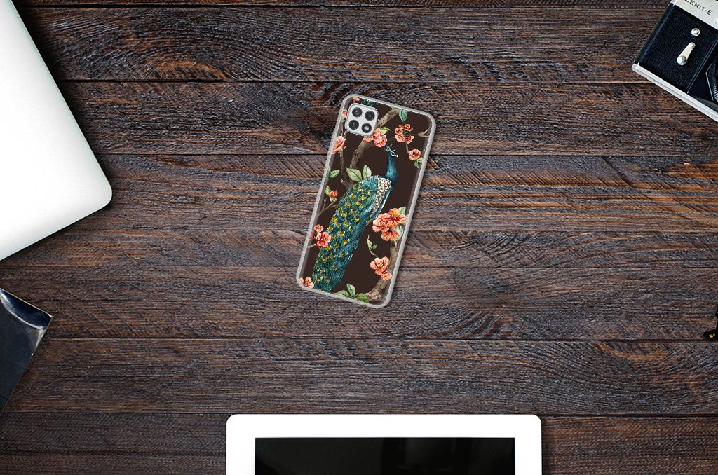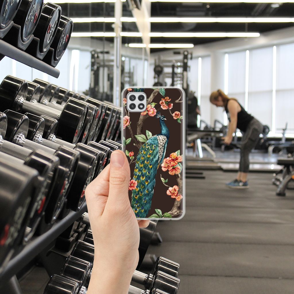 Op deze Samsung Galaxy A22 5G TPU Hoesje kun jij zo trots als een pauw zijn. Met dit geweldige design hoesje met een Pauw met Bloemen erop kun jij je smartphone voor zeer lange tijd beschermen. Deze tpu case is zeer duurzaam en gemaakt van zeer elastisch materiaal. Je bent zeer flexibel met deze TPU case met print van een pauw. Met een tpu case met fleurige bloemen en trotse pauwen wordt jouw telefoon er een stuk mooier op. De onderscheidende case heeft opstaande randen aan de voorzijde en wordt alleen aan de bovenzijde bedrukt. Zie jij liever jouw eigen huisdier op een telefoonhoesje? Dan adviseren we je zelf een hoesje te ontwerpen met onze unieke Phone Case Designer.
