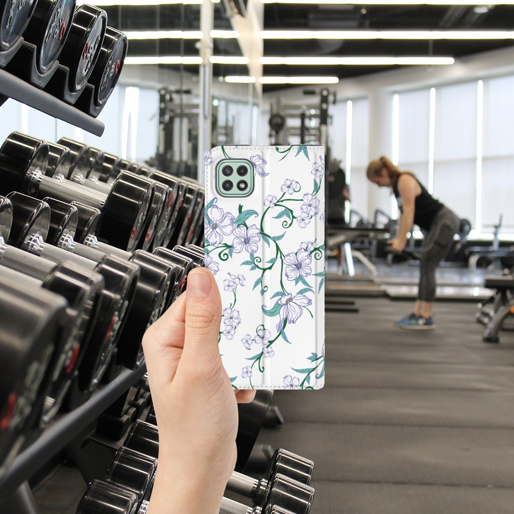 Witte bloemen staan voor puurheid, frisheid, helderheid en eenvoud. Geen wonder dus dat ze al heel lang populair zijn en ook prachtig staan op een telefoonhoesje. Niet iedereen houdt immers van kleurrijke designs. Toch graag bloemetjes op je Smart Cover maar zonder bonte kleuren? Dan is dit hoesje voor de Samsung Galaxy A22 5G perfect voor jou. Dit populaire smartphonehoesje heeft één vakje voor een pasje of briefgeld en is aan alle zijden bedrukt. Met de standcase zet je je telefoon gemakkelijk neer, zodat je je handen vrij hebt als je bijvoorbeeld een video wilt kijken. De binnenkant van de standcase is van grijs PU-leer. Dat is fijn, omdat je daardoor niet snel vlekken ziet op je hoesje.