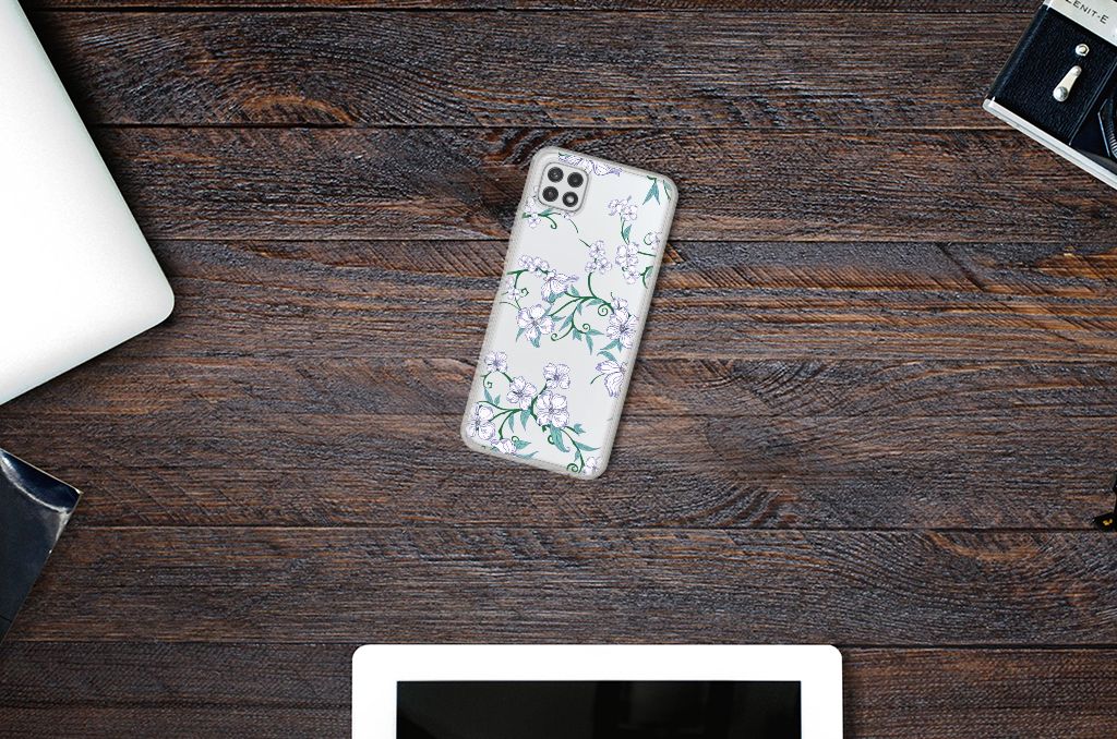 Samsung Galaxy A22 5G TPU Hoesje Pauw met Bloemen