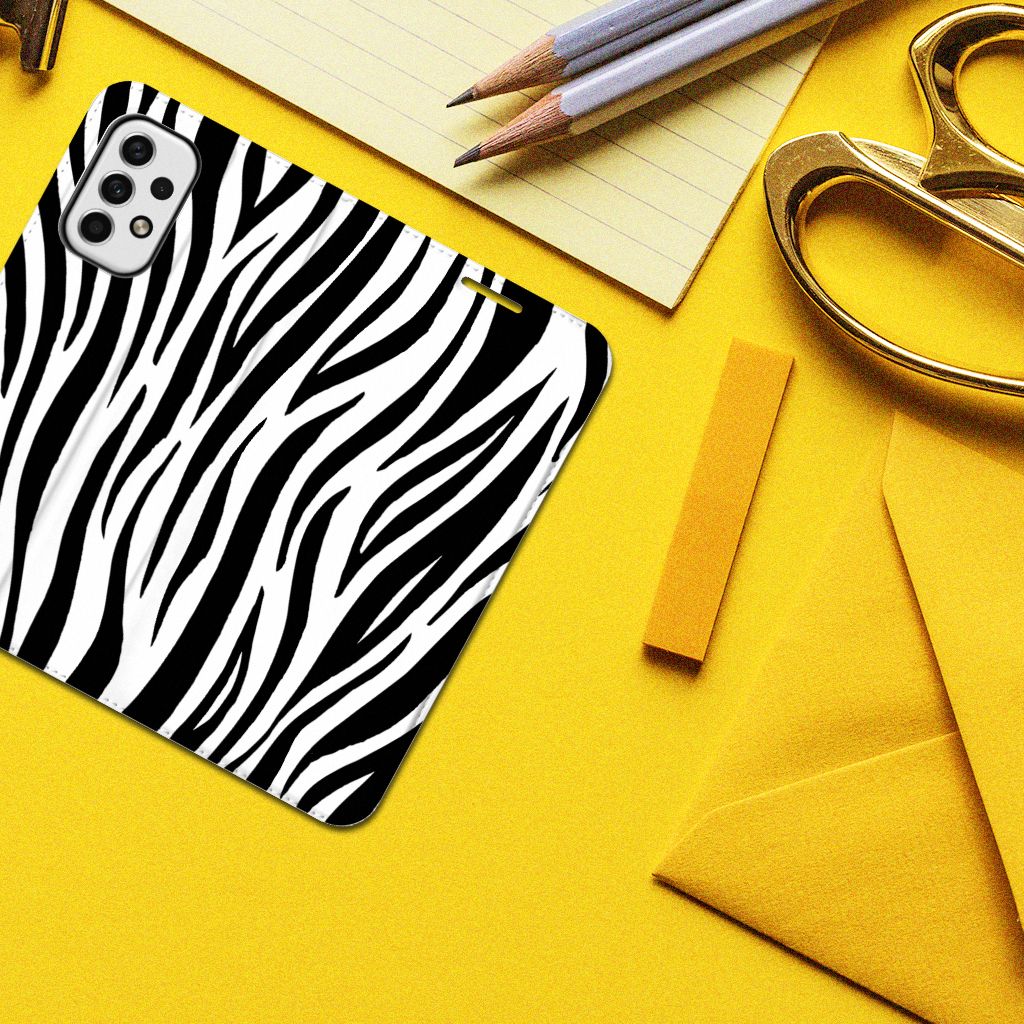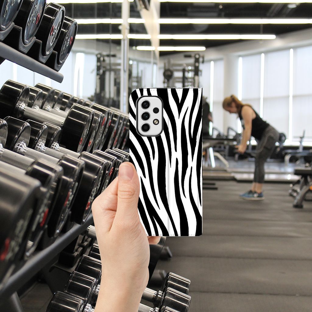 Deze Samsung Galaxy A23 Hoesje maken met zwart en witte zebra strepen kan exclusief in het bezit van jou komen. Zeker als je er zelf nog unieke teksten en/of beelden aan toevoegt van jezelf. Je hoesje krijgt dan een eigen identiteit, net zoals de witte en zwarte strepen uniek zijn bij iedere Zebra. Deze zijn te vergelijken met de vingerafdrukken bij de mens. De strepen en patronen zijn nooit identiek aan die van een andere zebra. Ben jij toe aan een unieke stand case? Pak dan dit design met zebra strepen als basis. Het stand hoesje is van PU-leer (buitenzijde) en TPU (binnenzijde) en beschikt over een houder voor pasjes en briefgeld. Verder is dit hoesje met zebra print voorzien van magneten aan de binnenzijde. Een zebra gebruikt de strepen ook om zich te camoufleren in de omgeving om zo uit het zicht te blijven van de roofdieren. Jij zorgt voor de perfecte bescherming van je smartphone met dit design hoesje in zebra kleuren.