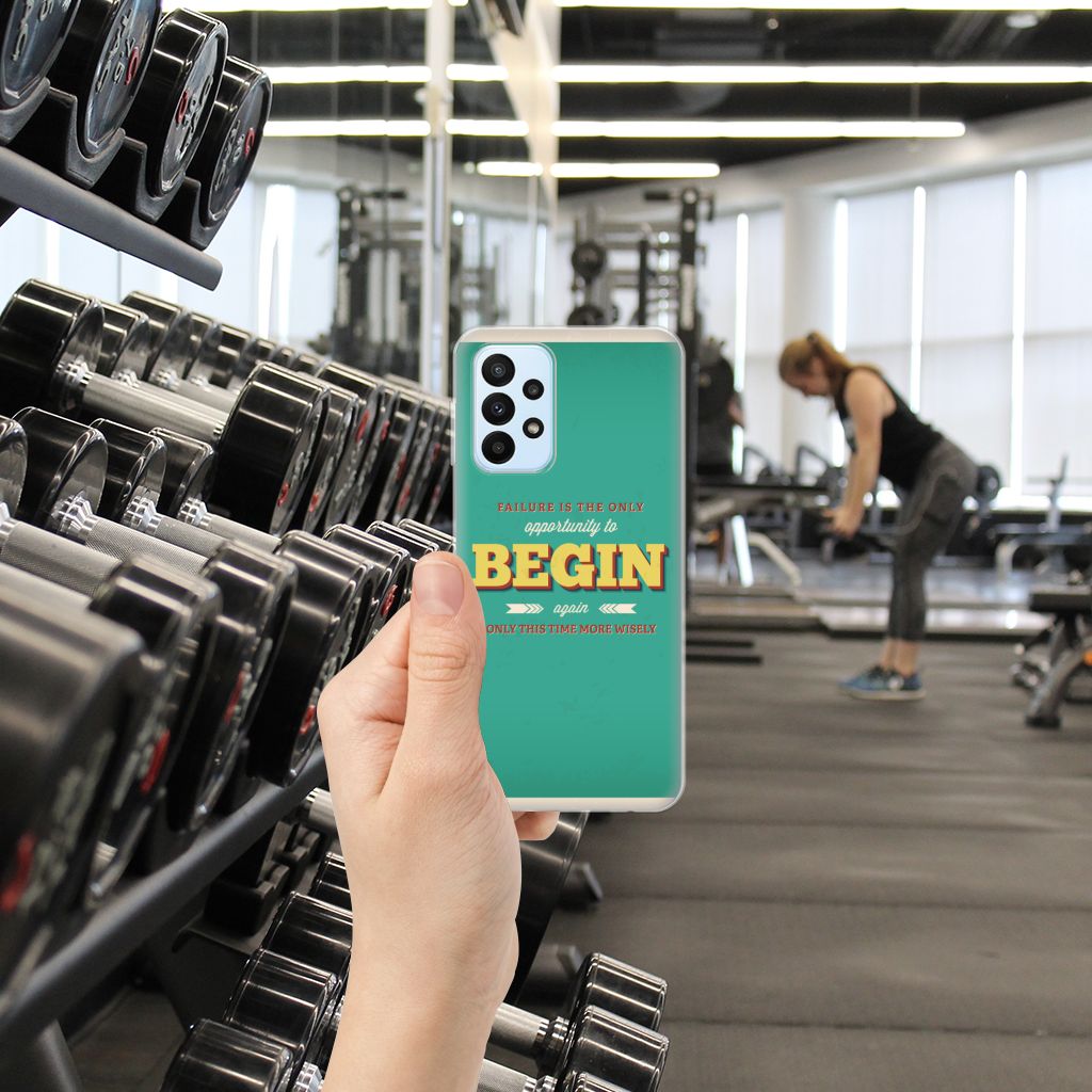 Ben je op zoek naar een uniek telefoonhoesje voor je Samsung Galaxy A23? Dan ben je bij B2C Telecom aan het juiste adres! Speciaal voor jou hebben we dit prachtige Quote Begin design in onze collectie hoesjes opgenomen. Het design wordt bedrukt op een Siliconen hoesje met naam en is gemaakt van flexibel rubber. Het design wordt alleen aan de bovenkant van het hoesje bedrukt en de randen blijven transparant. Aan de zijkanten zijn uitsparingen gemaakt waardoor je met gemak alle knoppen en poorten kunt bedienen. Wij adviseren om dit hoesje in combinatie met een screenprotector te gebruiken voor een langere levensduur van je telefoon. Wil je dit design hoesje nog iets extra's geven? Voeg dan gratis je naam of een quote toe! Is dit design hoesje toch niet helemaal wat je zocht? Ontwerp dan zelf een hoesje in ons ontwerpprogramma.