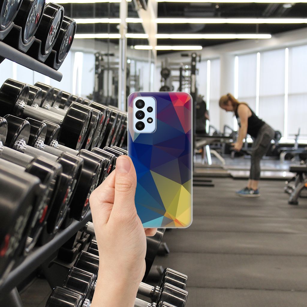 Ben je een liefhebber van abstracte hoesjes? Dan zit je met dit fraaie telefoonhoesje met Polygon Dark design voor je Samsung Galaxy A23 zeker goed. Het ontwerp springt in het oog door de naadloos op elkaar aansluitende veelhoeken – beter bekend als polygonen. Door hun asymmetrische karakter krijgt het TPU Hoesje een bijzondere uitstraling en wordt je blik ernaartoe gezogen als door het beste abstracte schilderij. Het trendy uiterlijk en de warme kleuren zorgen ervoor dat het hoesje aansluit op vrijwel elke smaak en situatie. Het design staat op een TPU case. Dit hoesje wordt alleen aan de bovenkant bedrukt en is zeer flexibel. De randen van het hoesje blijven transparant.