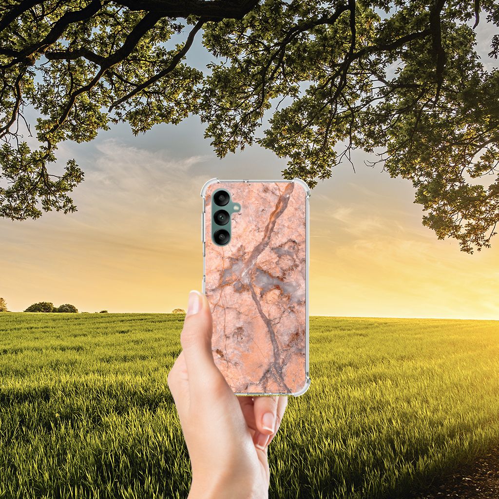Ben je op zoek naar een uniek telefoonhoesje voor je Samsung Galaxy A24? Dan ben je bij B2C Telecom aan het juiste adres! Speciaal voor jou hebben we dit prachtige Marmer Oranje design in onze collectie hoesjes opgenomen. Het design wordt bedrukt op een Anti-Shock Hoesje en is gemaakt van flexibel rubber. Het hoesje is perfect voor de actieve smartphonegebruiker door de opstaande randen/hoeken. Denk aan mensen die veel sporten, reizen of wandelen en net iets meer zekerheid willen als het op hun geliefde telefoon aankomt. Het design wordt alleen aan de bovenkant van het hoesje bedrukt en de randen blijven transparant. Aan de zijkanten zijn uitsparingen gemaakt waardoor je met gemak alle knoppen en poorten kunt bedienen. Wij adviseren om dit hoesje in combinatie met een screenprotector te gebruiken voor een langere levensduur van je telefoon. Wil je dit hoesje nog iets extra's geven? Voeg dan gratis je naam of een quote toe! Is dit design hoesje toch niet helemaal wat je zocht? Ontwerp dan zelf een hoesje in ons ontwerpprogramma.