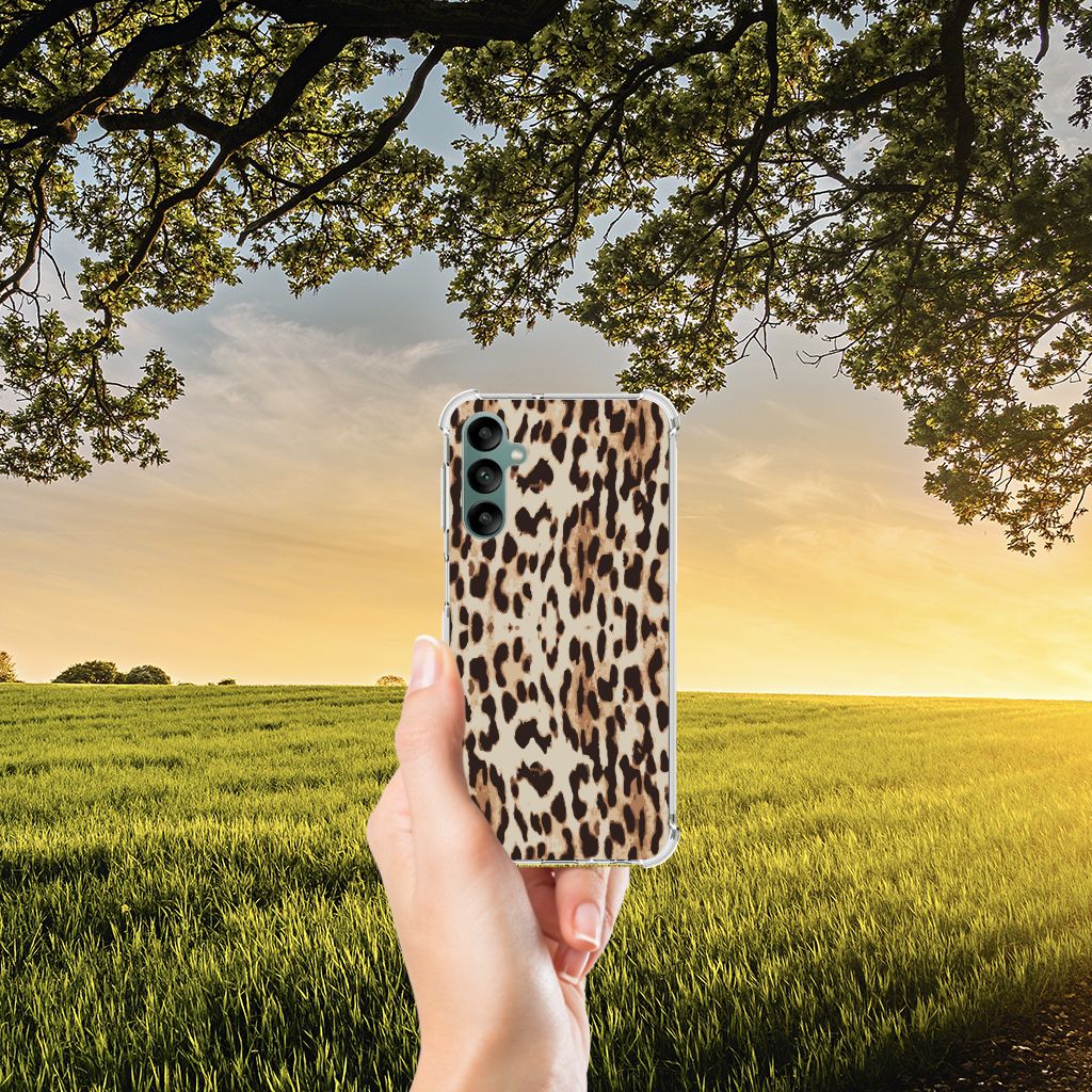 Ben je op zoek naar een uniek telefoonhoesje voor je Samsung Galaxy A24? Dan ben je bij B2C Telecom aan het juiste adres! Speciaal voor jou hebben we dit prachtige Leopard design in onze collectie hoesjes opgenomen. Het design wordt bedrukt op een Case Anti-shock en is gemaakt van flexibel rubber. Het hoesje is perfect voor de actieve smartphonegebruiker door de opstaande randen/hoeken. Denk aan mensen die veel sporten, reizen of wandelen en net iets meer zekerheid willen als het op hun geliefde telefoon aankomt. Het design wordt alleen aan de bovenkant van het hoesje bedrukt en de randen blijven transparant. Aan de zijkanten zijn uitsparingen gemaakt waardoor je met gemak alle knoppen en poorten kunt bedienen. Wij adviseren om dit hoesje in combinatie met een screenprotector te gebruiken voor een langere levensduur van je telefoon. Wil je dit hoesje nog iets extra's geven? Voeg dan gratis je naam of een quote toe! Is dit design hoesje toch niet helemaal wat je zocht? Ontwerp dan zelf een hoesje in ons ontwerpprogramma.
