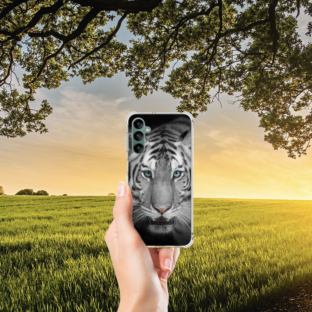 Ben je op zoek naar een uniek telefoonhoesje voor je Samsung Galaxy A24? Dan ben je bij B2C Telecom aan het juiste adres! Speciaal voor jou hebben we dit prachtige Tijger design in onze collectie hoesjes opgenomen. Het design wordt bedrukt op een Case Anti-shock en is gemaakt van flexibel rubber. Het hoesje is perfect voor de actieve smartphonegebruiker door de opstaande randen/hoeken. Denk aan mensen die veel sporten, reizen of wandelen en net iets meer zekerheid willen als het op hun geliefde telefoon aankomt. Het design wordt alleen aan de bovenkant van het hoesje bedrukt en de randen blijven transparant. Aan de zijkanten zijn uitsparingen gemaakt waardoor je met gemak alle knoppen en poorten kunt bedienen. Wij adviseren om dit hoesje in combinatie met een screenprotector te gebruiken voor een langere levensduur van je telefoon. Wil je dit hoesje nog iets extra's geven? Voeg dan gratis je naam of een quote toe! Is dit design hoesje toch niet helemaal wat je zocht? Ontwerp dan zelf een hoesje in ons ontwerpprogramma.