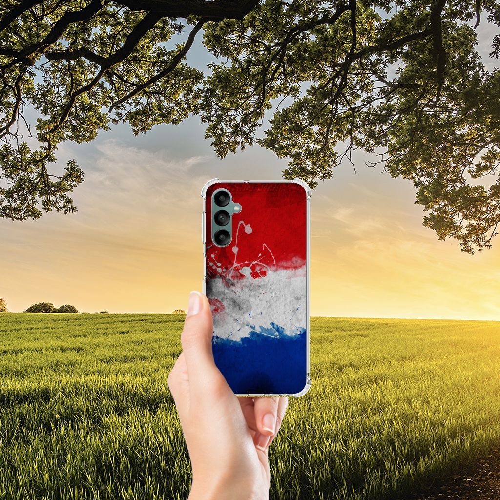 Ben je op zoek naar een uniek telefoonhoesje voor je Samsung Galaxy A24? Dan ben je bij B2C Telecom aan het juiste adres! Speciaal voor jou hebben we dit prachtige Nederlandse Vlag design in onze collectie hoesjes opgenomen. Het design wordt bedrukt op een Cover Case en is gemaakt van flexibel rubber. Het hoesje is perfect voor de actieve smartphonegebruiker door de opstaande randen/hoeken. Denk aan mensen die veel sporten, reizen of wandelen en net iets meer zekerheid willen als het op hun geliefde telefoon aankomt. Het design wordt alleen aan de bovenkant van het hoesje bedrukt en de randen blijven transparant. Aan de zijkanten zijn uitsparingen gemaakt waardoor je met gemak alle knoppen en poorten kunt bedienen. Wij adviseren om dit hoesje in combinatie met een screenprotector te gebruiken voor een langere levensduur van je telefoon. Wil je dit hoesje nog iets extra's geven? Voeg dan gratis je naam of een quote toe! Is dit design hoesje toch niet helemaal wat je zocht? Ontwerp dan zelf een hoesje in ons ontwerpprogramma.