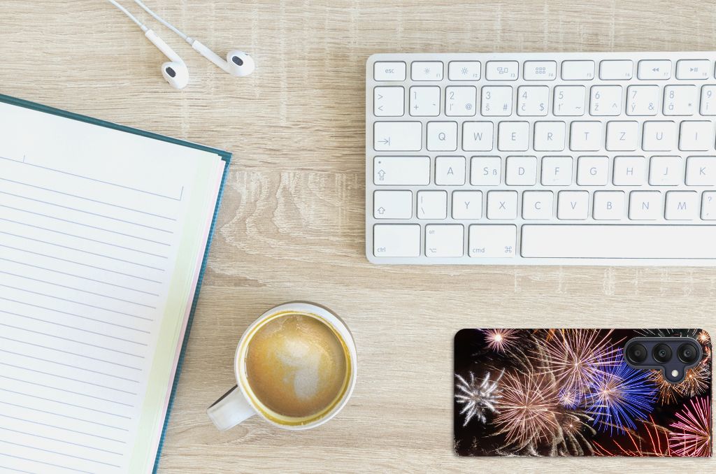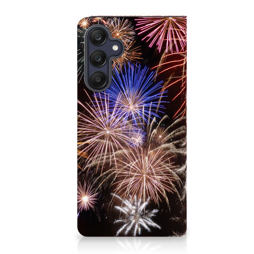 Deze Samsung Galaxy A25 Hippe Standcase levert gegarandeerd Vuurwerk op. Kijk alleen al eens naar de print van siervuurwerk, in zeer veel verschillende kleuren. Als je dit hoesje ziet kun je bijna niet geloven dat sommige gemeenten in Nederland overwegen om vuurwerk te verbieden. Er gebeuren weliswaar ongelukken mee, maar zoiets schitterends als op deze stand case met vuurwerk wil je toch gewoon niet missen. Bovendien beschermt dit hoesje jouw smartphone aan alle kanten. Alle zijden van deze case worden bedrukt en met een speciale standaard is het erg prettig om filmpjes te bekijken. De case wordt aan de binnenzijde met een magneet afgesloten en de houder aan de binnenzijde is van TPU. Onder alle omstandigheden zal deze case met 1 opbergvakje perfect functioneren, ook als je met nieuwjaar vuurwerk aan het afsteken bent. Zorg dan overigens wel dat je zelf ook voldoende afgeschermd bent van het vuurwerk.