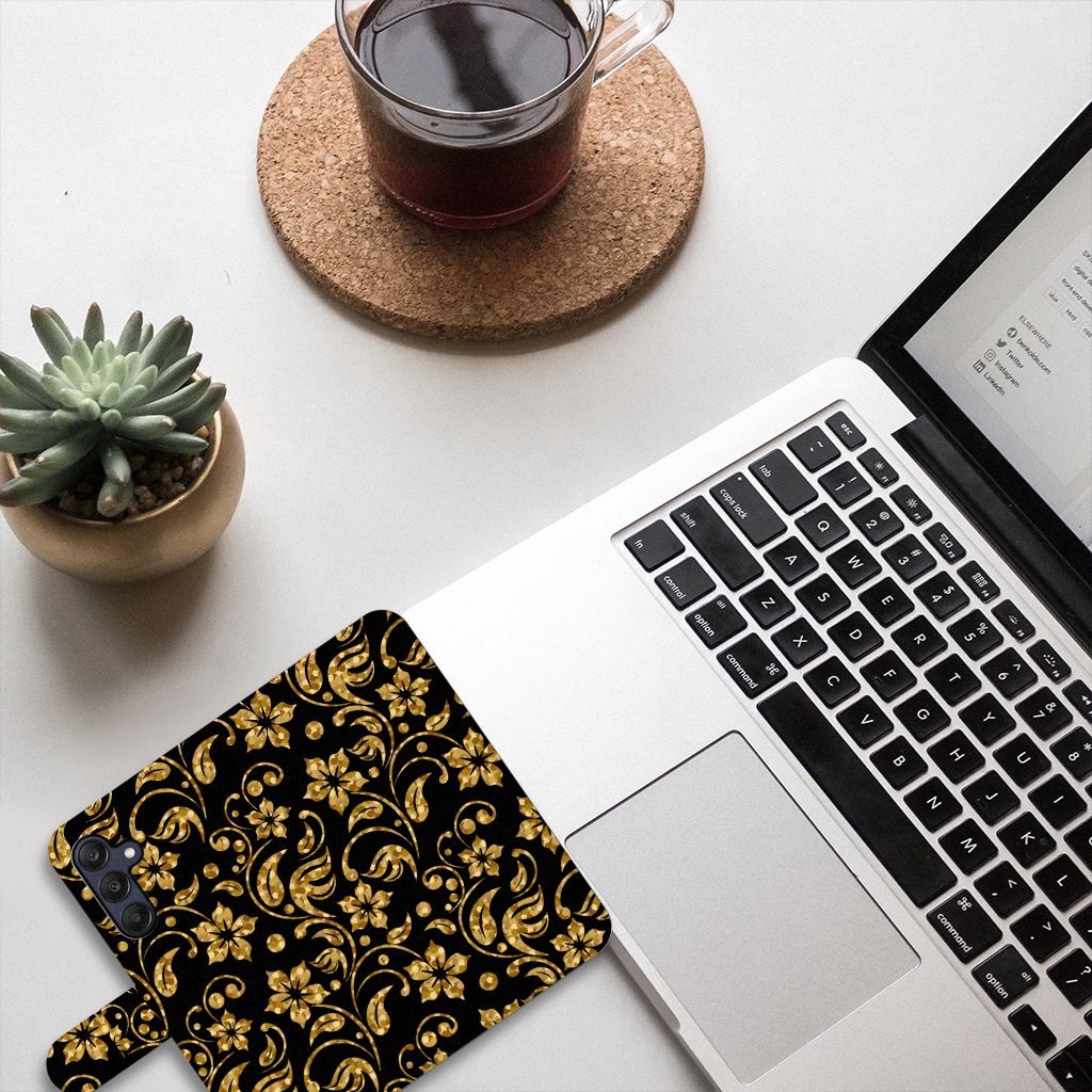 Ben je op zoek naar een uniek telefoonhoesje voor je Samsung Galaxy A25? Dan ben je bij B2C Telecom aan het juiste adres! Speciaal voor jou hebben we dit prachtige Gouden Bloemen design in onze collectie hoesjes opgenomen. Het design wordt bedrukt op een Hoesje en heeft twee vakjes voor pasjes en een groter vakje voor briefgeld. Alle zijdes van het hoesje worden bedrukt, hoe uniek is dat? Het hoesje wordt afgesloten met een sluit lipje aan de voorkant. Wil je dit design hoesje nog iets extra's geven? Voeg dan gratis je naam of een quote toe! Is dit design hoesje toch niet helemaal wat je zocht? Ontwerp dan zelf een hoesje in ons ontwerpprogramma.
