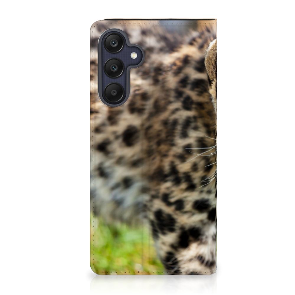 De luipaard is een grote, gespierde katachtige met korte, krachtige poten en een lange staart. Aangezien het op dit hoesje een baby luipaard betreft, zijn deze eigenschappen nog niet volledig tot wasdom gekomen. De kop van de luipaard is breed en een beetje rond van vorm met kleine, ronde oren. De snuit is middelgroot, met krachtige kaken en lange snorharen. De vacht van een luipaard is bedekt met veel zwarte vlekken. Kies je voor dit design hoesje, dan zal er van vlekken op jouw smartphone nooit en te nimmer sprake zijn. Het stoere en tegelijkertijd aandoenlijke design staat op een stand case. Een Samsung Galaxy A25 Hoesje maken beschermt jouw telefoon aan alle kanten en beschikt over een 1 opbergvakje en een speciale standaard. Het hoesje wordt afgesloten met een magneet aan de binnenzijde. De houder aan de binnenzijde is van TPU.