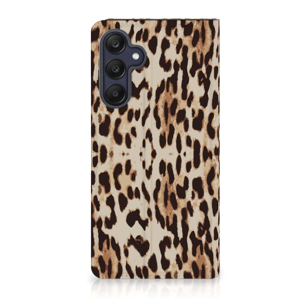 Het luipaard wordt ook wel een panter genoemd en is een sluwe kat. De bruingele vacht met een patroon van rozetachtige vlekken geeft een goede schutkleur. Dit zie je ook op een fraaie manier afgebeeld op dit super stoere hoesje met luipaardprint. Mensen die indruk willen maken kopen deze stand case met Leopard print. Een Samsung Galaxy A25 Hoesje maken is van alle markten thuis. Het is praktisch – vanwege onder meer het opbergvakje en de magnetische sluiting aan de binnenzijde – maar beschermt jouw smartphone tevens op een geweldige manier. Het luipaard is sterk en behendig en wellicht typeert jou dat ook wel. Dan past dit hoesje met luipaard perfect bij jou. De houder van TPU aan de binnenzijde is minstens zo sterk als het luipaard. Jouw telefoon is perfect beschermd en de case heeft tevens een standaard.