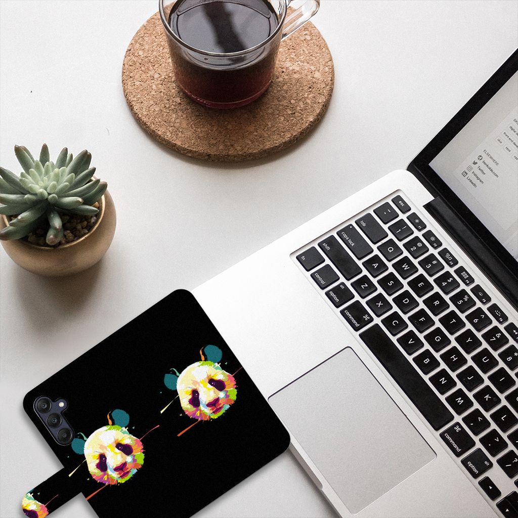 Heb jij een Samsung Galaxy A25 en ben je op zoek naar een Leuk Hoesje, dan is dit hoesje misschien wel wat voor jou! Op dit hoesje staat een panda afgedrukt in verschillende kleuren. De panda is een leuk dier voor op jouw boekhoesje, maar is eigenlijk natuurlijk zwart en wit. Op dit boekhoesje is er kleur toegevoegd om het telefoon hoesje een vrolijkere uitstraling te geven. Bovendien worden alle zijden van het boekhoesje bedrukt, dat is pas waar voor je geld! Als dit nog niet uniek genoeg voor je is, kun je er altijd zelf nog een quote of naam aan toevoegen, dit kost je helemaal niets extra. Mocht dit nog steeds niet uniek genoeg zijn voor jou, dan kun je het hoesje verder personaliseren in ons ontwerpprogramma.