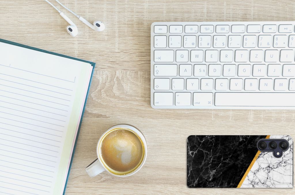 Dit design hoesje met zwartwit marmer is zeer geschikt voor jouw kostbare telefoon. Vanwege zijn prachtige lichtval en vastheid is marmer zeer gewild als bouwmateriaal. Op jouw smartphone kun je lange tijd bouwen als jij kiest voor deze hele mooie Samsung Galaxy A25 Standcase. Naast het zwart-witte marmer zijn er de diverse marmersoorten in een ruim kleurenpallet te krijgen. Deze stand case met marmer in zwart-wit wordt bedrukt op alle zijden. De case beschikt over een vakje voor een pasje en toebehoren en een magnetische sluiting aan de binnenzijde. Verder heeft de case in zwart wit marmer een houder van TPU. Wij hebben onze designer veel vrijheid gegeven met het ontwerpen dit mooie hoesje. Het resultaat zie je terug in deze stand case met zwartwit marmer, dat de ideale bescherming is voor jouw smartphone.