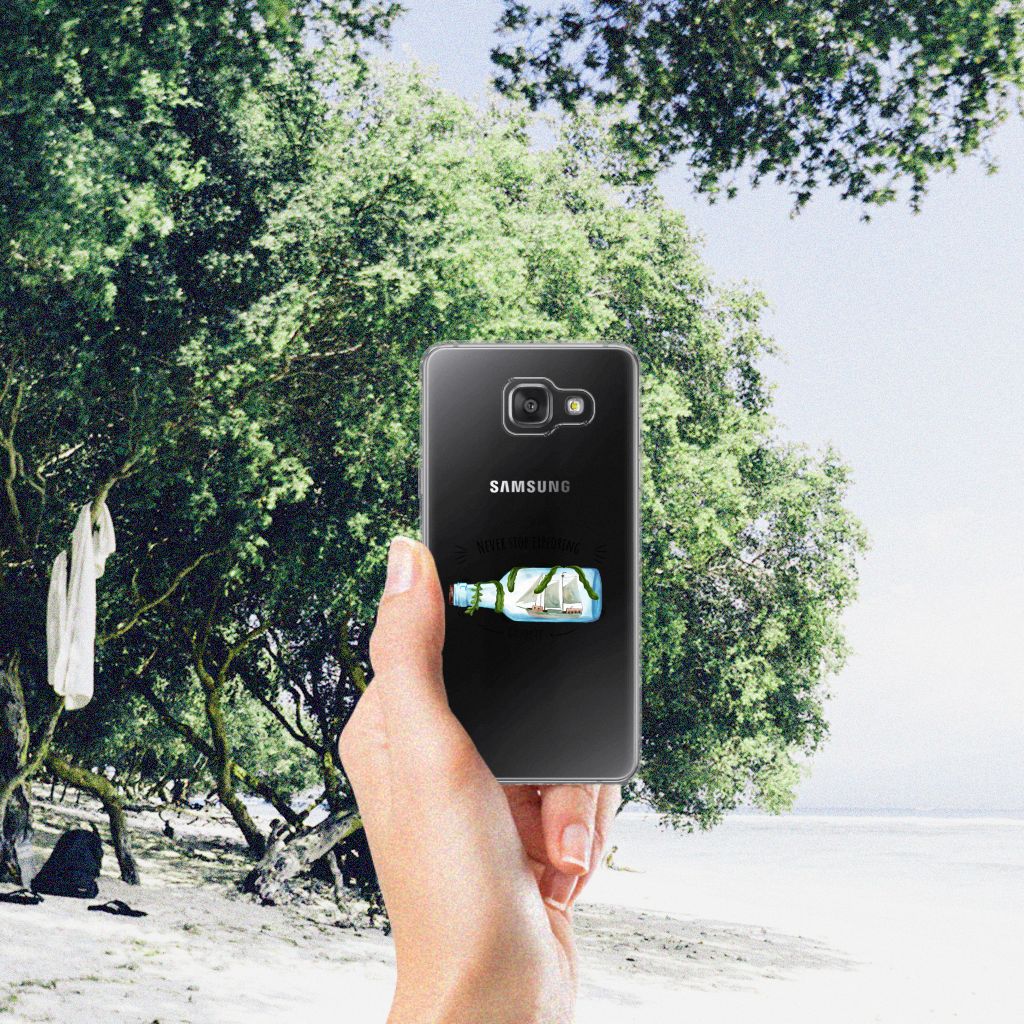 Dit leuke design met een schip in een fles is voor de echte avonturier of reiziger. Dankzij de tekst ‘Never stop exploring: Go for it’ word je altijd herinnerd aan het feit dat het volgende avontuur weer op de loer ligt! Dit design staat op een Telefoonhoesje met Naam voor je Samsung Galaxy A3 2016. TPU is flexibel en heel erg sterk. Zo is je telefoon aan de achterkant en de randen heel goed beschermd. De case is aan de bovenkant bedrukt, de randen blijven transparant. Het TPU-hoesje is perfect te combineren met een screenprotector, zo zijn je telefoon en je beeldscherm altijd goed beschermd.